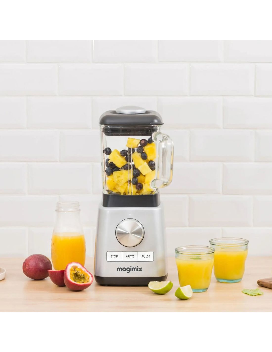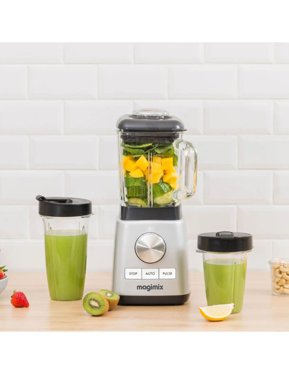 La Batidora Power Blender 3 Magimix es una batidora compacta y eficiente, ideal para preparar smoothies, sopas, hielo triturado, postres helados y otras preparaciones con rapidez y resultados consistentes. Con 1000W de potencia, hasta 15000rpm y una capacidad útil de 1,2L, es una opción práctica para el uso diario y especialmente indicada para cocinas pequeñas y para hasta 3 personas.