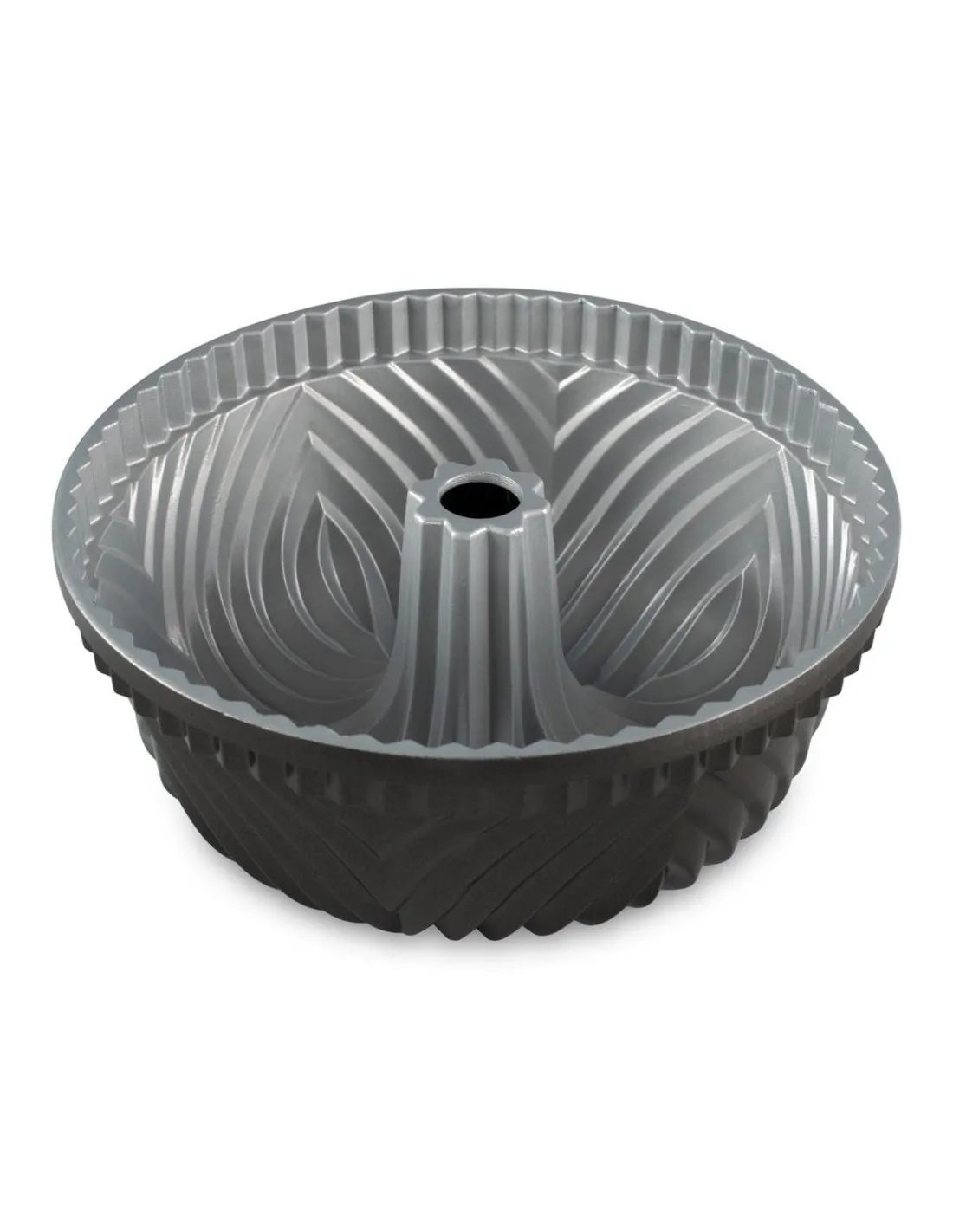 Nordic Warede Elegant Party Bundt Pan. Las formas de aluminio fundido de la Nordic Ware aseguran la precisión de los detalles. El aluminio fundido extremadamente duradero distribuye el calor rápida y constantemente, para un crecimiento equilibrado de la torta, una cocción uniforme y una corteza dorada. El tubo central lleva el calor al medio del pastel...