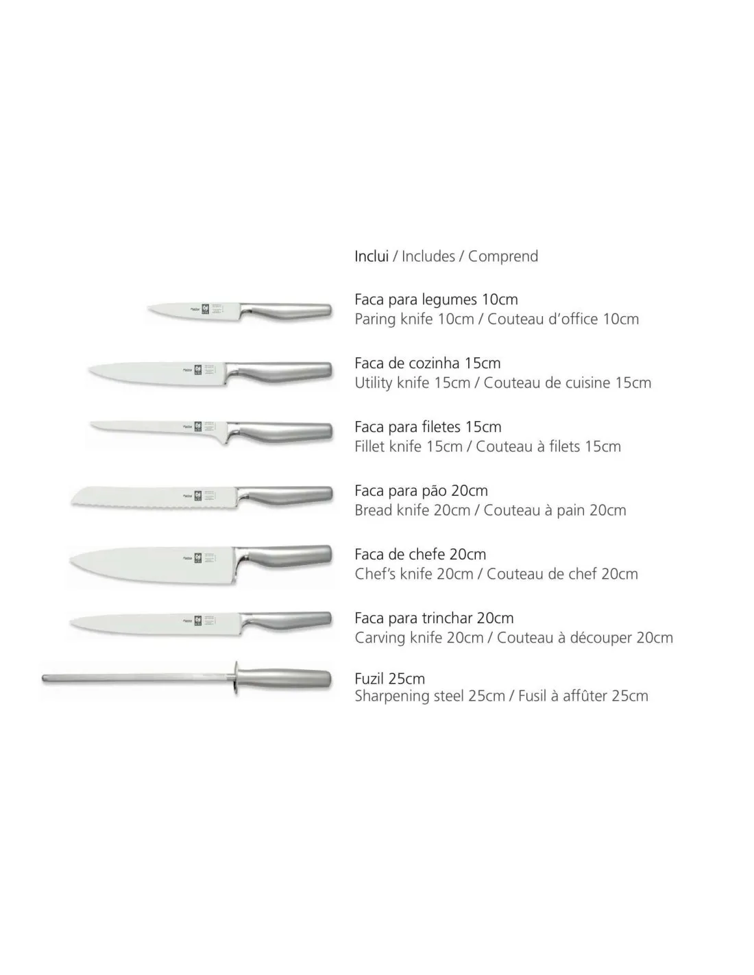 El Bloque Redondo con 7 piezas - Platino se fabrica con cuchillas forjadas de acero inoxidable superior con cromo-molibdeno-vanadio (X50CrMoV15). Las cuchillas forjadas se producen utilizando el método de calentamiento de acero seguido de moldeo de piezas. Se caracterizan por un robusto refuerzo, son más pesados, logran una mayor dureza y requieren menos bordes. Simplicidad y diseño ergonómico. Los cables producidos con acero inoxidable AISI 304, no manchan y no se deslizan incluso con las manos mojadas.