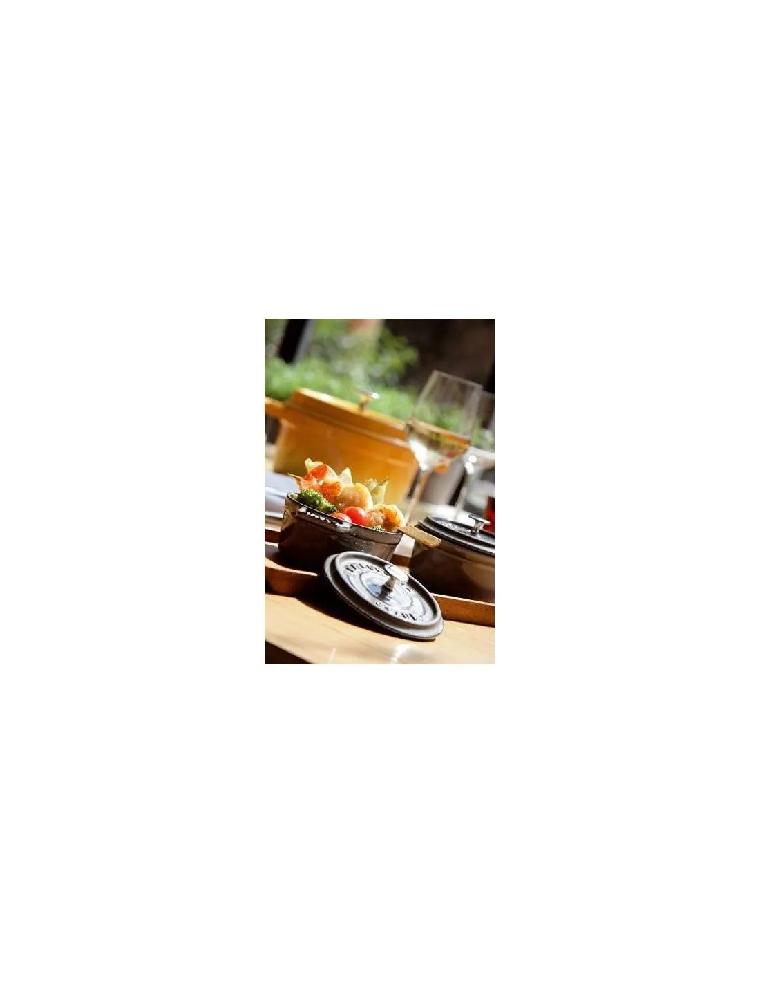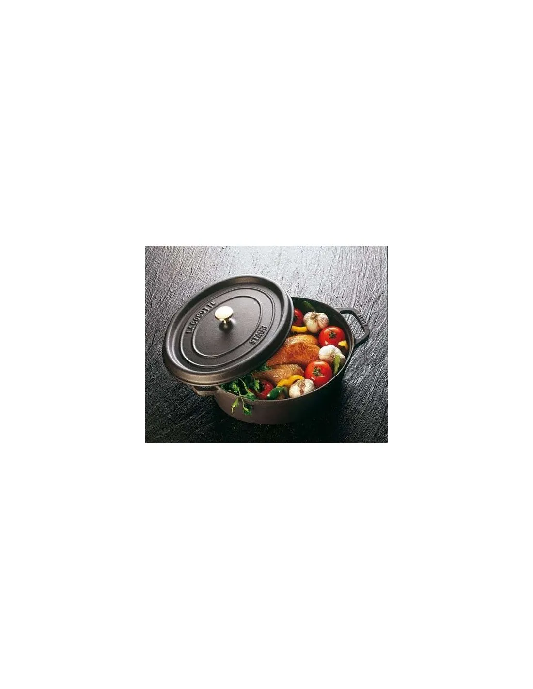 La Cocotte ovalada de color gris grafito Staub es un ejemplo de diseño funcional y elegante. Su diseño simple, pero cuidadosamente elaborado, se centra en optimizar el rendimiento en la cocina. Con una longitud de 27 cm, esta cocotte cuenta con una tapa que se ajusta a la perfección y dos asas de hierro fundido, diseñadas para ser utilizadas con agarraderas de cocina.