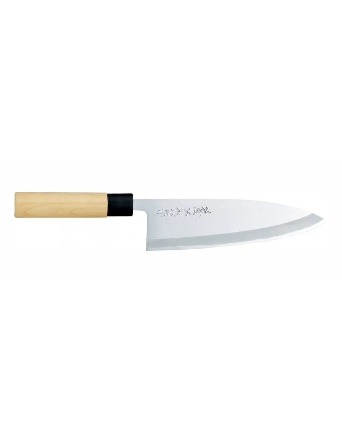 El Cuchillo Deba 21cm Shirogami Tojiro es de hoja pesada y gruesa, utilizado para cortar, filetear y separar la cabeza del pescado. También se puede utilizar para cortar aves.