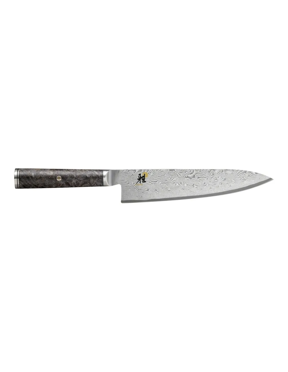 Este cuchillo chef japonés, también conocido como GYUTOH de la MIYABI 5000MCD 67 es un ejemplo impresionante de la mejor artesanía japonesa. Esta hoja tiene un patrón de albaricoque único y se produce con 133 capas delgadas, que implican un núcleo de lámina de acero en polvo MC66 de microcarburo. La hoja se somete a un proceso de endurecimiento especial durante su producción para dar una dureza de 66 Rockwell.
