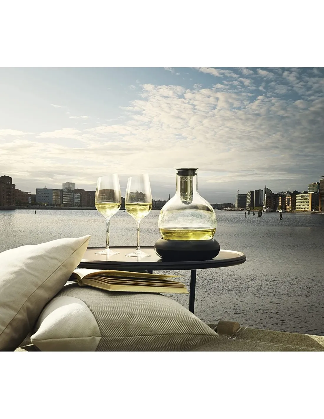 Este práctico decantador de la marca danesa Eva Solo es perfecto para sacar lo mejor de tus vinos. Para maximizar el sabor del vino tinto y blanco, se recomienda airearlo antes de servir. La jarra está hecha en vidrio soplado con tapón antigoteo. El decantador tiene un embudo integrado en el tape que cuando el vino se vierte en la jarra, pasa a través de los pequeños orificios y corre a lo largo del interior de la botella, haciendo que el vino se airee suavemente, de manera eficiente y elegante. La base de refrigeración mantiene el vino blanco frío durante más tiempo y puede colocarse en el congelador para sacarla justo antes de ser utilizada.