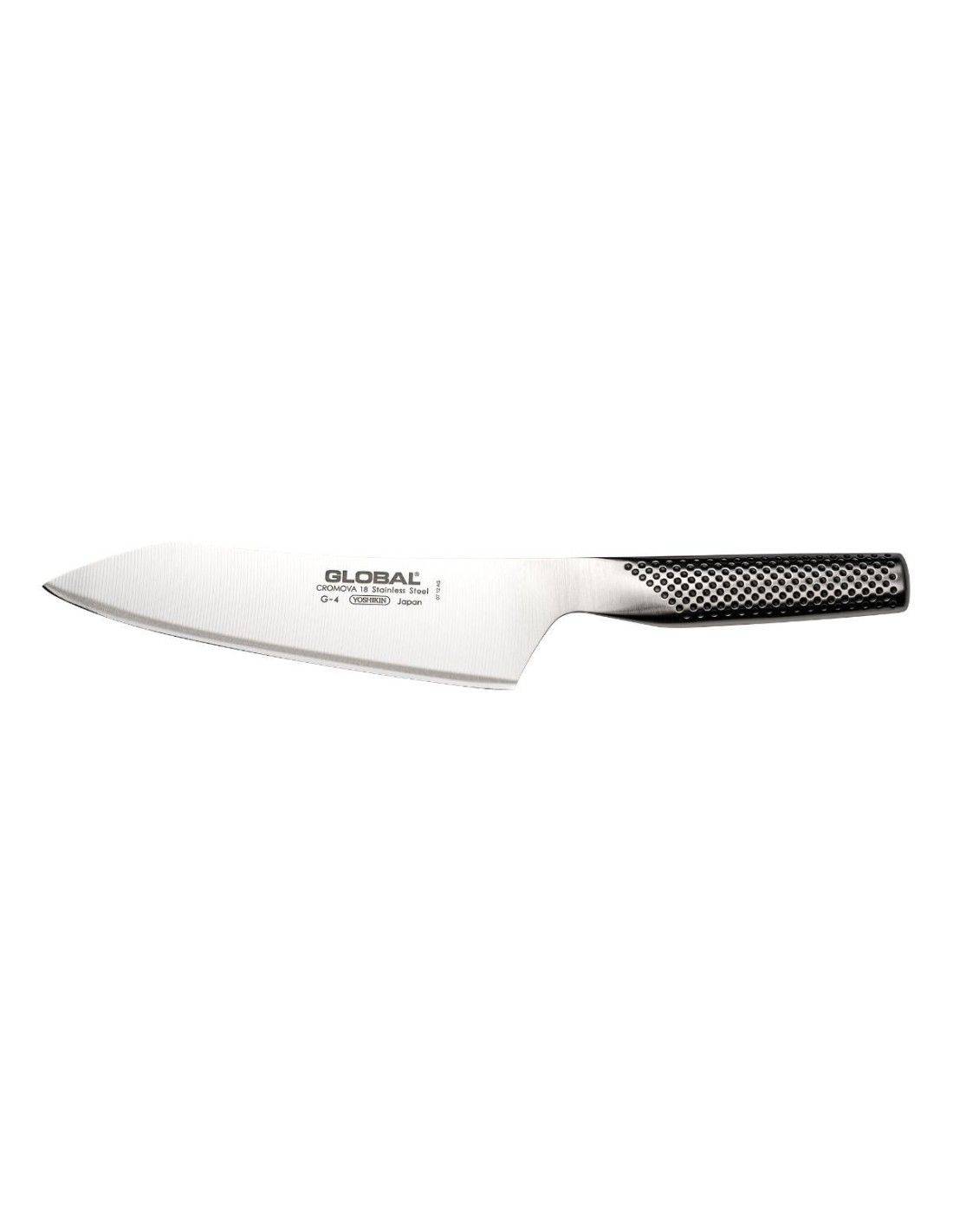 El Global G-4 Cuchillo de Chef Oriental 18 cm es un cuchillo japonés versátil y preciso, concebido para ofrecer un excelente rendimiento en las tareas de preparación diarias. Su perfil distintivo se aproxima al de un cuchillo de chef clásico, pero con una silueta más oriental, una punta más marcada y una curvatura que favorece movimientos fluidos y controlados.