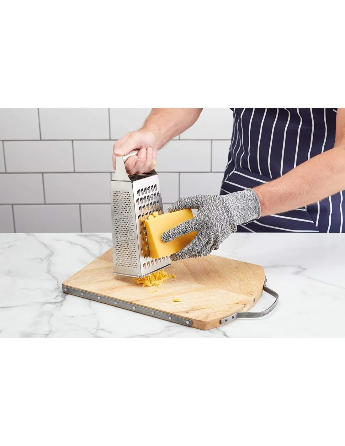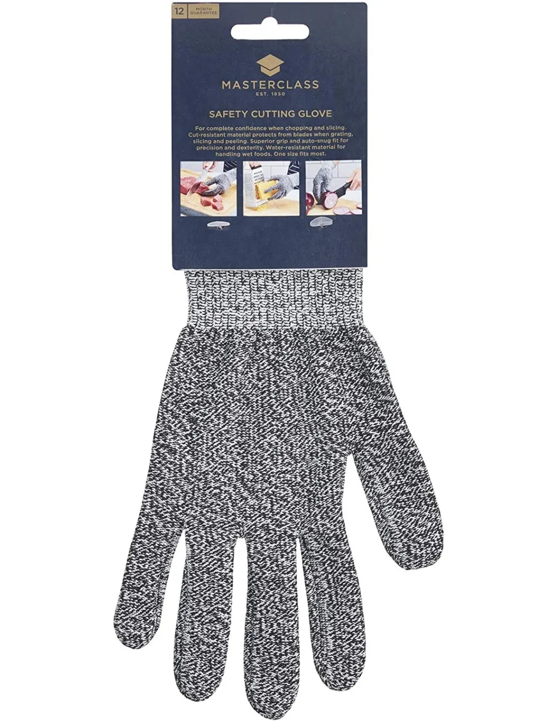 Los cocineros profesionales saben que la seguridad es la clave del éxito en la cocina. Así que mantenga la suya en funcionamiento de forma rápida y segura, con este ingenioso guante de cocina resistente a los cortes. Este ayudante de cocina ultrarresistente está fabricado con fibra UHMPE, un tipo de resina tejida diseñada para situaciones intensas y exigentes. Ofrece una excelente resistencia a los cortes, pero es elástico y transpirable, para que sus dedos se mantengan ágiles y pueda disfrutar de un agarre firme de las herramientas y los ingredientes. Utilícelo siempre que trabaje con cuchillas, ya sea cortando a toda velocidad con un cuchillo afilado, utilizando una cortadora mandolina o simplemente pelando o rallando. Reducirá drásticamente el riesgo de cortes, para que nada se interponga en el camino de su receta. Tiene 12 meses de garantía.