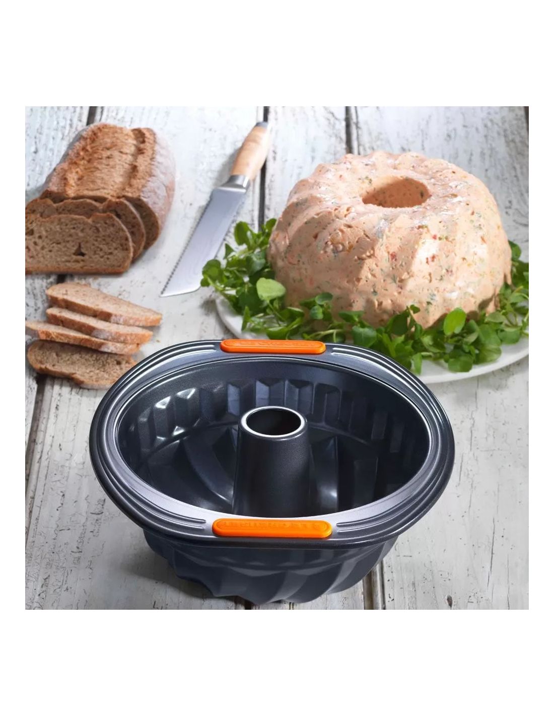 Copos chillones y gotas brillantes adornan este nuevo Bundt de invierno. Desde todos los ángulos, el diseño refleja el fascinante movimiento de la nieve arrastrada por el viento. El aluminio fundido extremadamente duradero distribuye el calor rápida y constantemente, para un crecimiento equilibrado de la torta, una cocción uniforme y una corteza dorada....