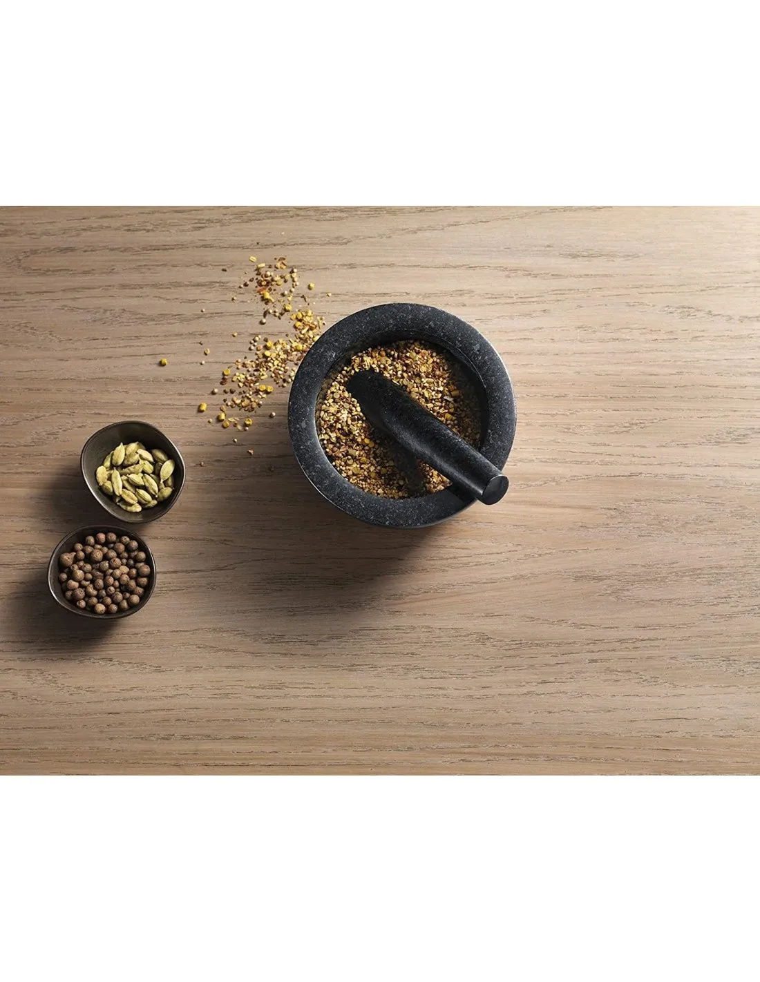 Traslada tus platos a otra dimensión añadiéndoles hierbas frescas y especias. Si además las trituras o mueles en un mortero, liberarás todo su aroma y sabor. Este precioso set de gres te resultará muy útil tanto en el día a día como para celebrar ocasiones más especiales. Ah, y además sirve para decorar tu encimera.