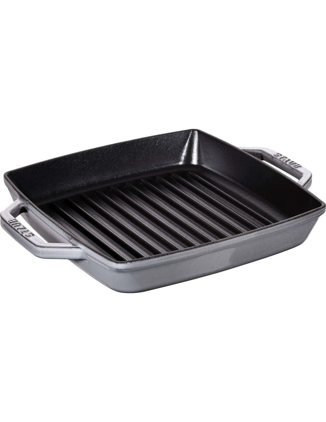 Con el grill Staub ya no necesitará una barbacoa para disfrutar de carne y salchichas excelentemente preparados. En este grill puede freír carne, pescado y verduras, o, si lo prefiere, cocinarlos a fuego lento. El hierro colado mantiene bien el calor y lo transmite uniformemente a la comida. Las altas temperaturas alcanzadas por la superficie interior esmaltada de color negro mate garantizan un agradable sabor a asado. Gracias a los surcos de la base interior de la parrilla, las características líneas de la barbacoa quedan marcadas en la comida. El exceso de grasa se escurre entre los surcos y puede vaciarse por las esquinas del grill. La forma de estos canales evita goteos inconvenientes. La carne estará tierna y crujiente al mismo tiempo. El grill tiene dos pequeñas asas en los laterales con las que es fácil transportarla, girarla o inclinarla para verter su contenido. Es adecuado para todo tipo de cocinas, incluso las de inducción. Este grill de dos asas tiene una medida total de 33 cm. Con el compacto y práctico grill adquirirá un versátil complemento para su cocina con el que podrá preparar auténticos platos asados sin tener que encender una barbacoa.