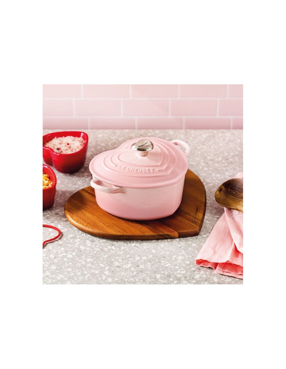 Fabricada con amor, esta emblemática pieza es un regalo perfecto para el Día de la Madre, San Valentín, un cumpleaños o una boda. Su encantadora forma de corazón la diferencia notablemente de otras piezas de nuestra colección de hierro fundido, pero sus prestaciones son exactamente las mismas. La estructura de hierro fundido distribuye el calor de manera uniforme para obtener resultados increíbles y conserva la temperatura de los alimentos durante más tiempo para que puedas llevarla a la mesa. Tiene un diseño perfecto para elaborar estofados, asados y sopas y hornear preciosos bizcochos desde el corazón. Además, está decorada con un encantador pomo resistente al calor con la misma forma.
