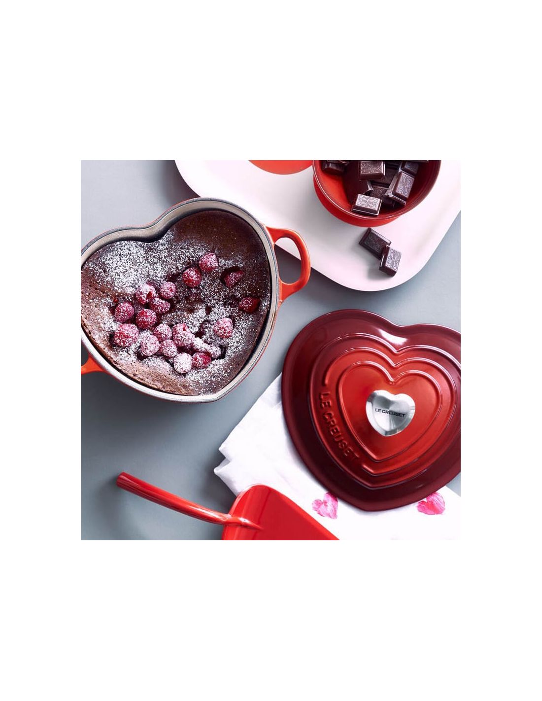 Fabricada con amor, esta emblemática pieza es un regalo perfecto para el Día de la Madre, San Valentín, un cumpleaños o una boda. Su encantadora forma de corazón la diferencia notablemente de otras piezas de nuestra colección de hierro fundido, pero sus prestaciones son exactamente las mismas. La estructura de hierro fundido distribuye el calor de manera uniforme para obtener resultados increíbles y conserva la temperatura de los alimentos durante más tiempo para que puedas llevarla a la mesa. Tiene un diseño perfecto para elaborar estofados, asados y sopas y hornear preciosos bizcochos desde el corazón. Además, está decorada con un encantador pomo resistente al calor con la misma forma.