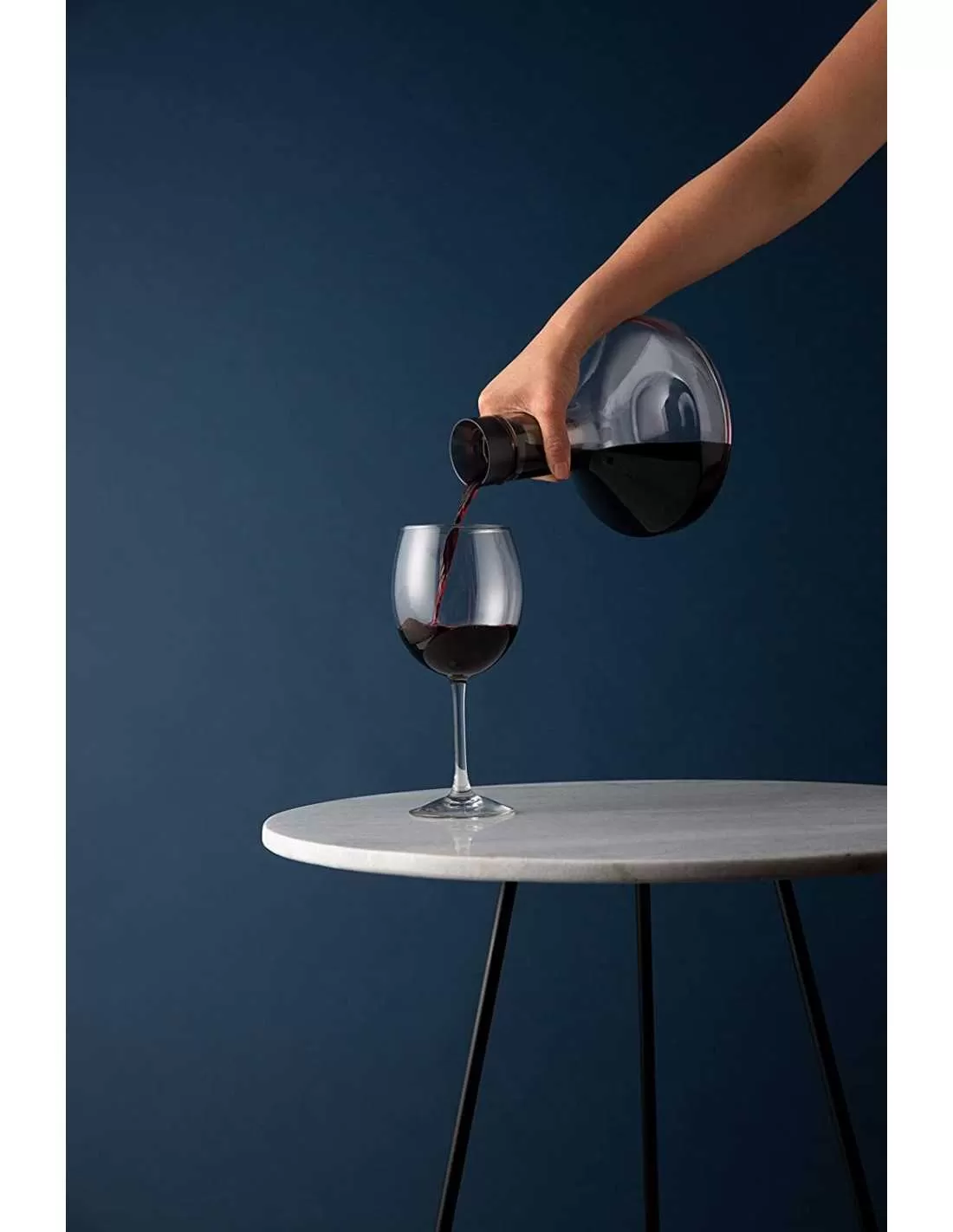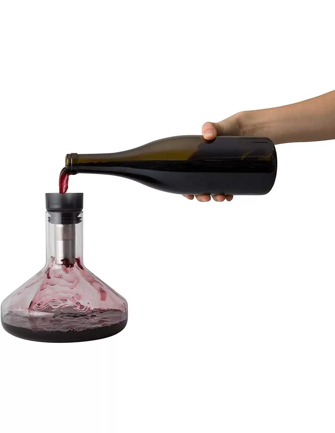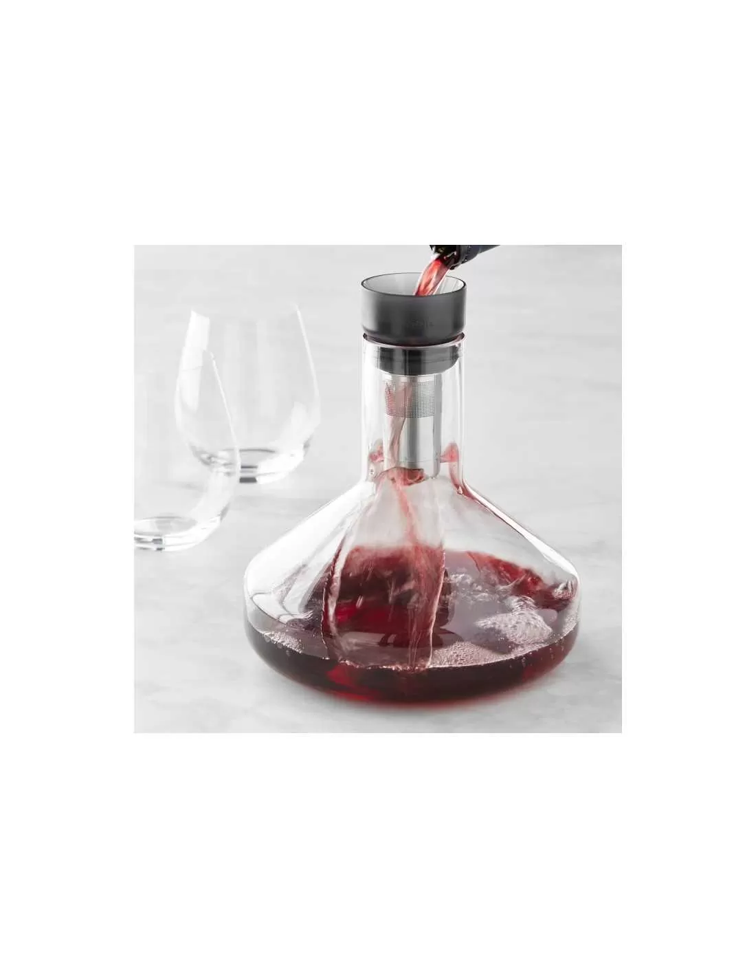 - El aireador hace caer el vino en cascada por el lateral del decantador para una aireación instantánea