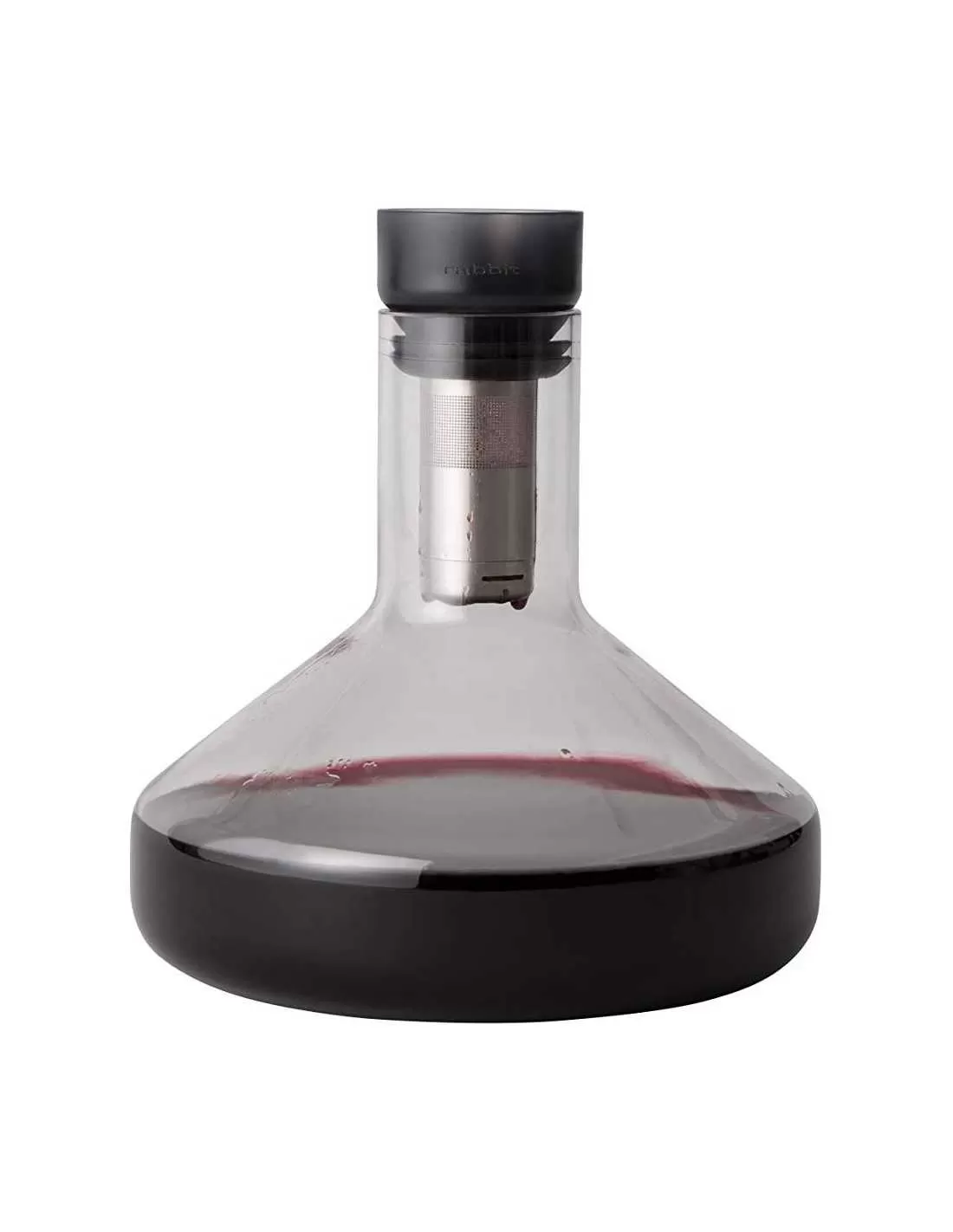 Dejar que el vino respire ya es cosa del pasado. Cuando realmente quiera lucir su vino, hágalo con el sistema de decantación Pura de Rabbit. Este juego de aireador de vino incluye un bonito decantador de cristal, además de un embudo pulverizador y un filtro a juego, para asegurarse de que su vino alcanza todo su potencial en aspecto, sabor y aroma. En primer lugar, el vino pasa por el embudo, que elimina cualquier sedimento o corcho. A continuación, el embudo lo pulveriza en pequeñas gotas contra las paredes del decantador. Por último, gotea por las paredes, totalmente aireado y listo para verterlo en copas y disfrutarlo. Utilícelo con cualquier vino tinto -bordeos añejos, finos pinot noir o ricos merlot- y convierta el acto de servir en un espectáculo impresionante y elegante.
