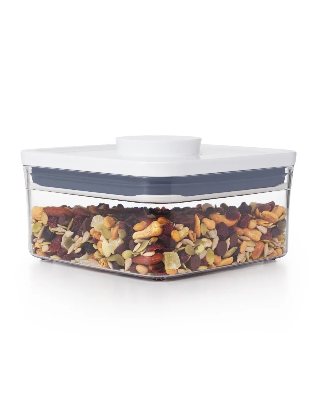 Las botellas de OXO se cierran con sellos herméticos y se abren fácilmente con una mano. Tienen diferentes formas y tamaños, son modulares y son exactamente lo que necesita para renovar su despensa. Cada contenedor POP cuenta con un vial transparente, libre de BPA, esquinas redondeadas para facilitar la fuga y una línea de llenado para evitar el sobrellenado. Diferentes tamaños están diseñados para diferentes dosis de alimentos como harina, pasta, azúcar,... Abrir los viales es tan fácil como pulsar un botón, que también sirve como parte de la tapa. Siempre presione el botón para abrir y cerrar la tapaLa línea POP también tiene accesorios que se fijan a la parte inferior de las tapas para aprovechar al máximo sus botellas POP de OXO.