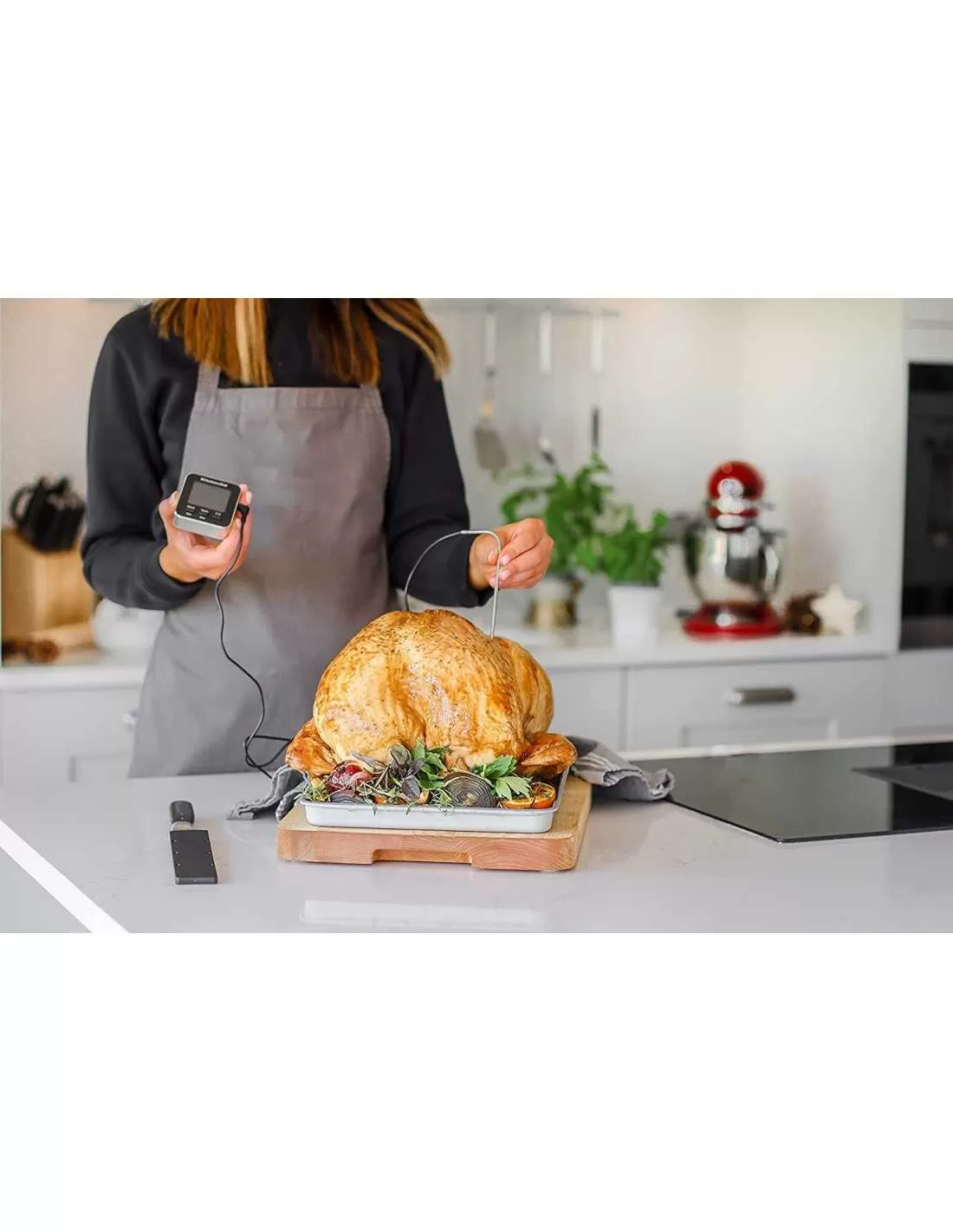 Controle fácilmente la temperatura de los alimentos dentro del horno con la sonda y el termómetro de alambre, programables y los KitchenAid. Realice un seguimiento del progreso de la cocción sin abrir la tapa del horno o la sartén y mantenga la temperatura uniforme para obtener los mejores resultados. Cuando el alimento alcanza el tiempo preestablecido o la temperatura interna deseada, se emite una señal de alarma para garantizar los resultados deseados.
