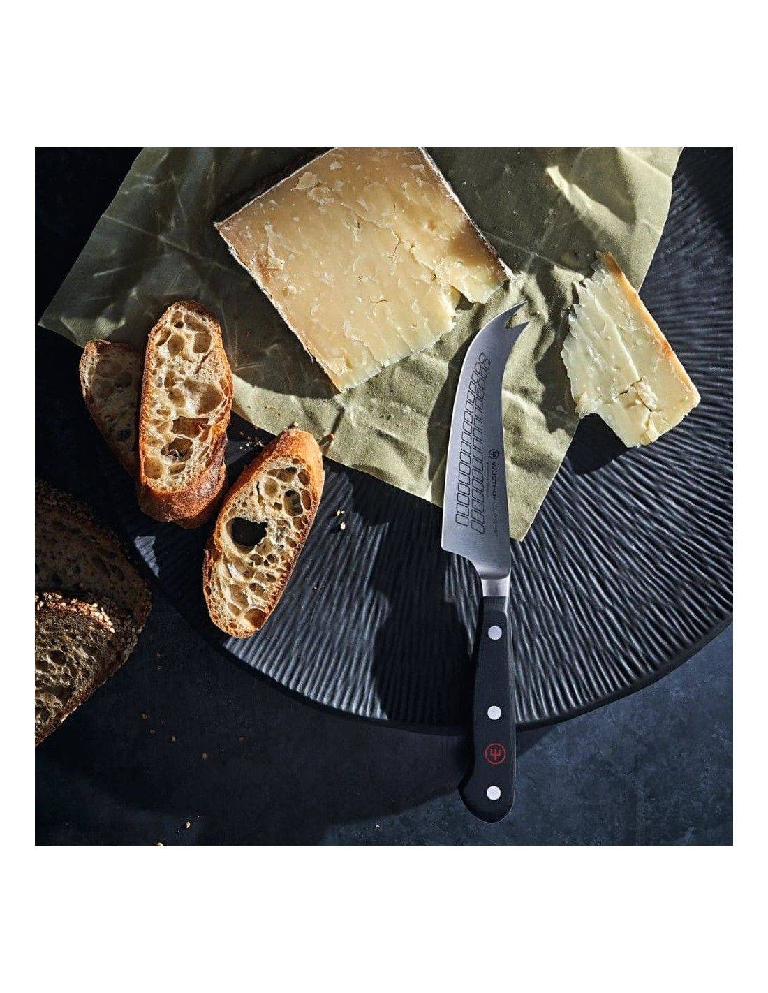 Integrado en la gama Wüsthof Classic, este cuchillo combina construcción forjada, robustez y precisión, siendo una excelente elección para quienes valoran utensilios específicos para servir y preparar queso de forma más eficaz.