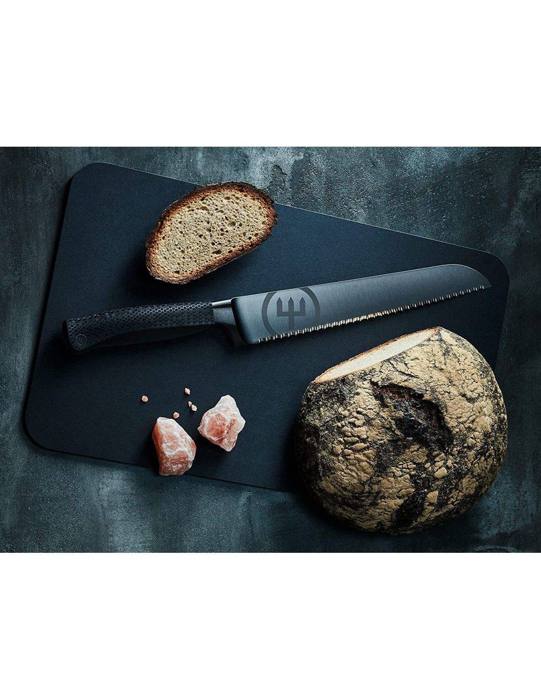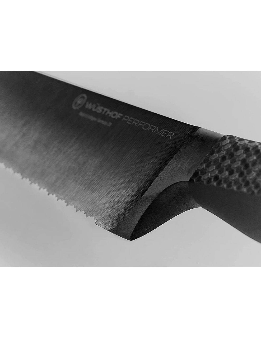 El Wüsthof Performer Cuchillo de Pan de Doble Dentado 23 cm es una pieza de alto rendimiento, diseñada para cortar con precisión, suavidad y control absoluto. Su filo de doble dentado, con una segunda fila de dientes finos, permite deslizarse fácilmente por superficies duras y delicadas, logrando cortes limpios sin aplastar, arrastrar ni desgarrar.