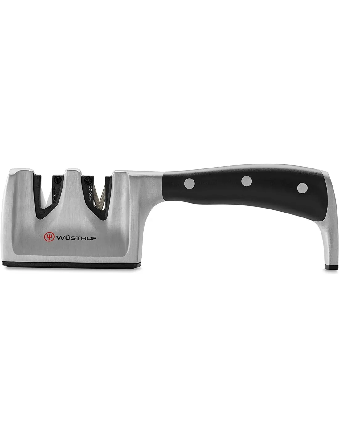 La façon la plus simple d’aiguiser vos couteaux et de les garder affûtés. Cet aiguise-couteaux double en V avec fusils diamantes et céramiques est particulièrement adapté aux personnes qui ne se sentent pas à l’aise avec les fusils (liens) ou les pierres à aiguiser (liens). Avec cet aiguise-couteaux, le couteau est simplement tiré à travers les encoches de guidage plusieurs fois - l’encoche avec fusil tungstène est utilisée pour un affûtage plus grossier (pour les lames émoussées) tandis que l’encoche avec fusil céramique est réservée à un affûtage fin (pour les lames grossièrement affûtées ou moyennement affûtées) - et les résultats sont rapidement obtenus.