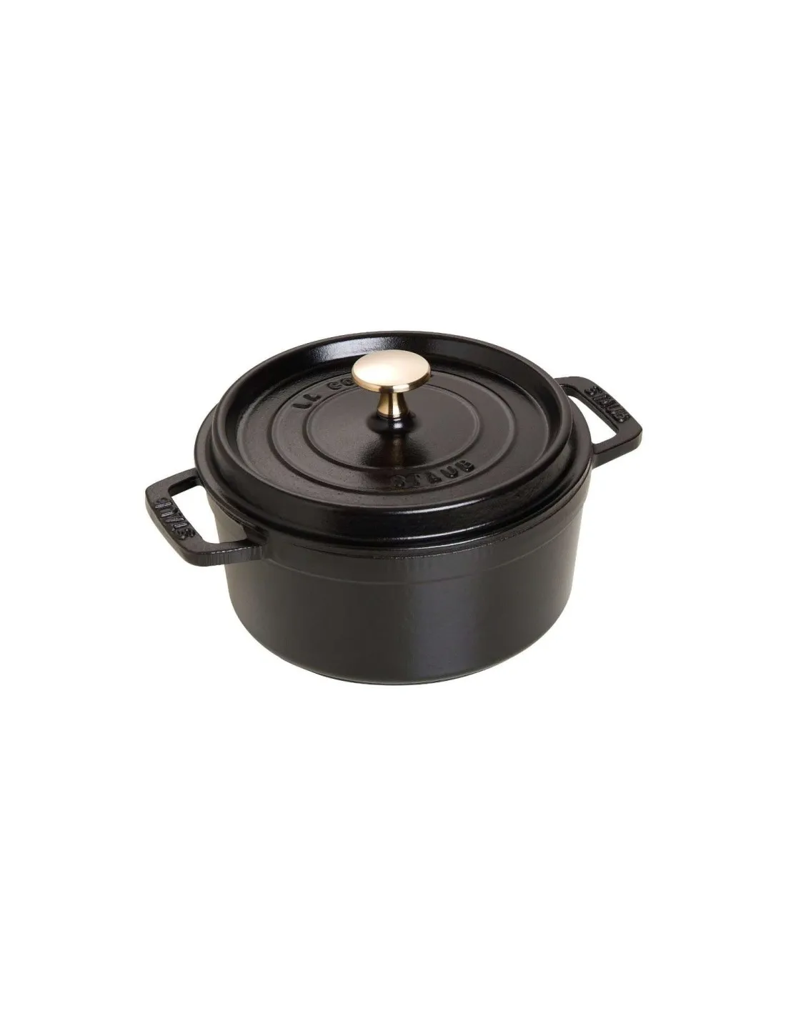 Cette cocotte ronde en fonte émaillée STAUB de 18cm est adaptée pour 1 à 2 personnes, pour préparer des plats mijotés, des rôtis, de la volaille et même du pain ! Compatible tous feux et four, elle peut également s’utiliser sur induction. Véritable savoir-faire authentique de création française, cette cocotte est une pièce unique, issue d’un processus de fabrication traditionnel. Avec son design élaboré et son poids optimisé, son couvercle plat au contour marqué présente d’excellentes propriétés de rétention de l’humidité et assure grâce à ses picots®, un arrosage homogène, une pluie d’arômes, pour des plats qui mijotent longtemps. L’intérieur de cette cocotte est émaillé noir mat, la marque de fabrique STAUB. Cet émail de qualité supérieure permet d’obtenir une meilleure résistance aux rayures et facilite l’entretien. Il possède les propriétés idéales pour saisir, rôtir et caraméliser les aliments. Née en Alsace, la cocotte STAUB a su traverser le temps et les frontières. Préférée aussi bien par les amateurs que les grands chefs, elle passe aisément de la cuisine à la table. Quel que soit le plat que vous concoctez, avec la Cocotte STAUB vous avez l’assurance de conserver toute l’intensité et les saveurs, la viande restera tendre et les légumes moelleux. Composée de fonte, un alliage de fer riche en carbone, un des matériaux qui retiennent le mieux la chaleur, la diffuse lentement et la redistribue de manière parfaitement homogène. Une fois la fonte suffisamment chaude, ses propriétés de rétention de la chaleur permettent de réduire le feu au minimum, afin de laisser mijoter doucement les plats. La fonte conserve également le froid : la cocotte à température ambiante peut être placée au réfrigérateur avant de servir afin de rester froide une fois à table.