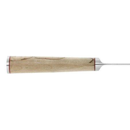- Bordure de bord symétrique et ultra-tranchante en utilisant la technique Honbazuke, un procédé japonais traditionnel dans lequel les deux côtés de la lame sont tranchants et polis de trois manières différentes.