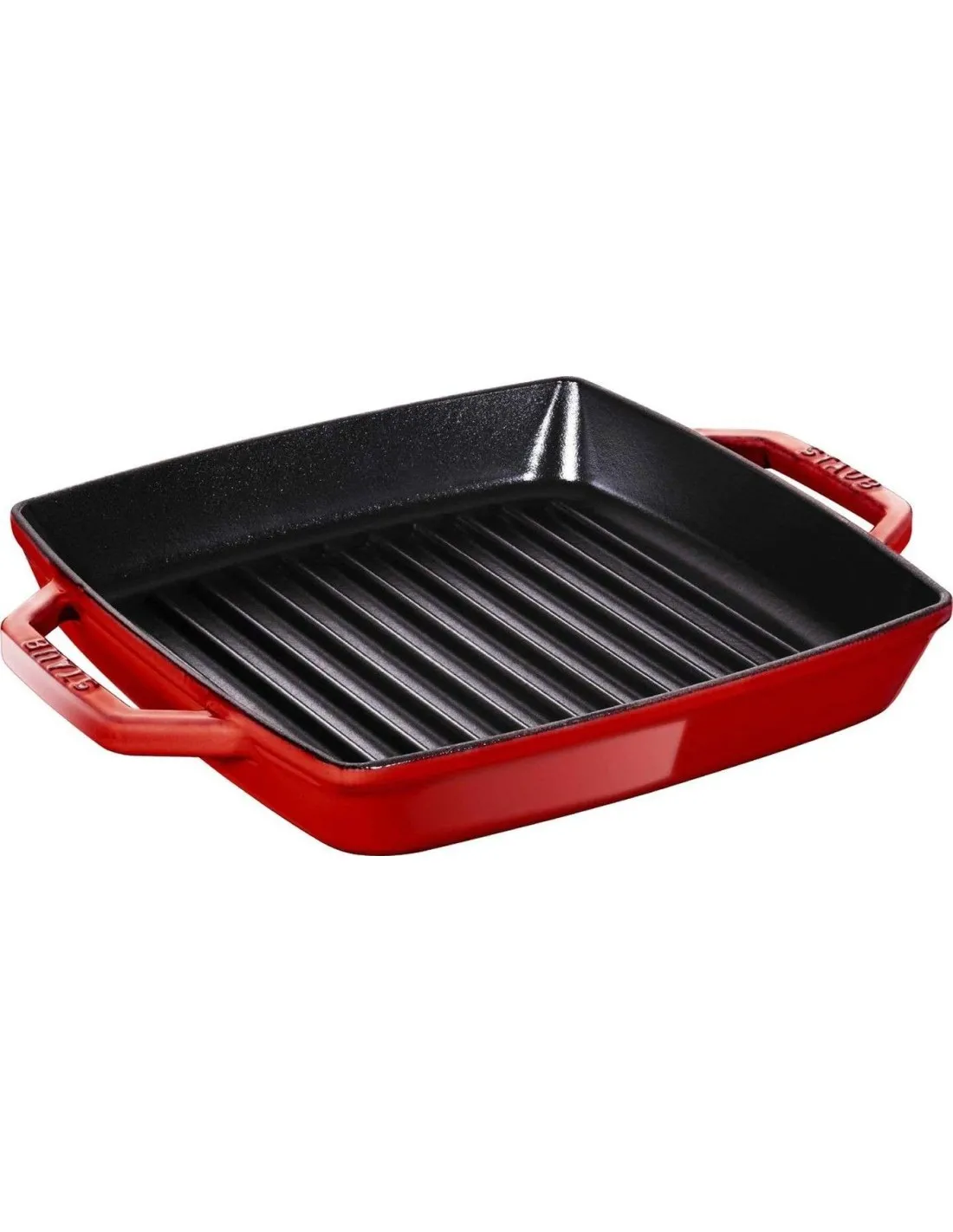 Le Gril carré double poignée en fonte émaillée STAUB Noir mat de 33 cm, pour une cuisson parfaitement grillée comme au barbecue, mais à la maison. Compatible tous feux et four, le gril s’utilise aussi sur induction. Avec ses poignées, il est facile à prendre en main et passe facilement de la cuisine à la table. L’intérieur du gril est émaillé noir mat, la marque de fabrique STAUB. Cet émail de qualité supérieure permet d’obtenir une meilleure résistance aux rayures et facilite l’entretien. Avec ses rainures spéciales, ce gril possède des propriétés idéales pour saisir et caraméliser les aliments. Composée de fonte, un alliage de fer riche en carbone, un des matériaux qui retiennent le mieux la chaleur. Une fois, le gril suffisamment chaud, ses propriétés de rétention de la chaleur permettent de cuire parfaitement les aliments, tout en conservant leurs valeurs nutritionnelles et leurs saveurs.