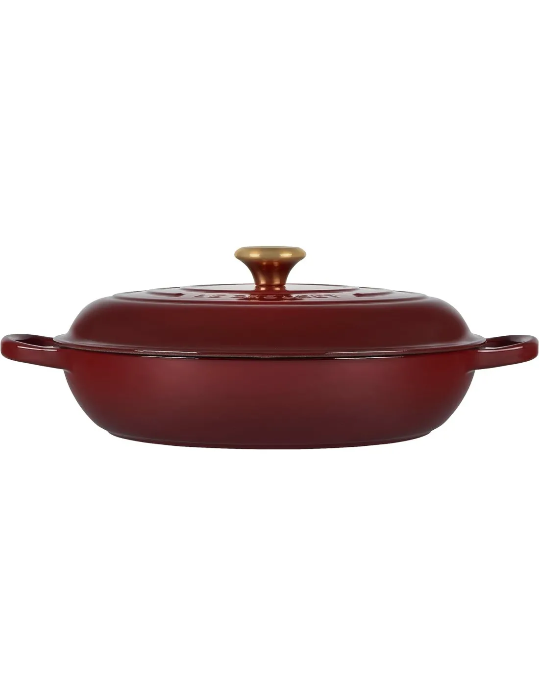 Fabriquées dans notre usine historique française, nos pièces en fonte émaillée sont devenues des références dans le monde des arts de la table. Ce faitout ne fait pas exception à la règle. La grande surface plane et les parois peu profondes de ce faitout sont idéales pour faire dorer viande et légumes, faire rissoler, cuire au four ou mettre à mijoter vos plats en sauce. La perfection pour obtenir une belle caramélisation des sucs de cuisson et des saveurs gourmandes.