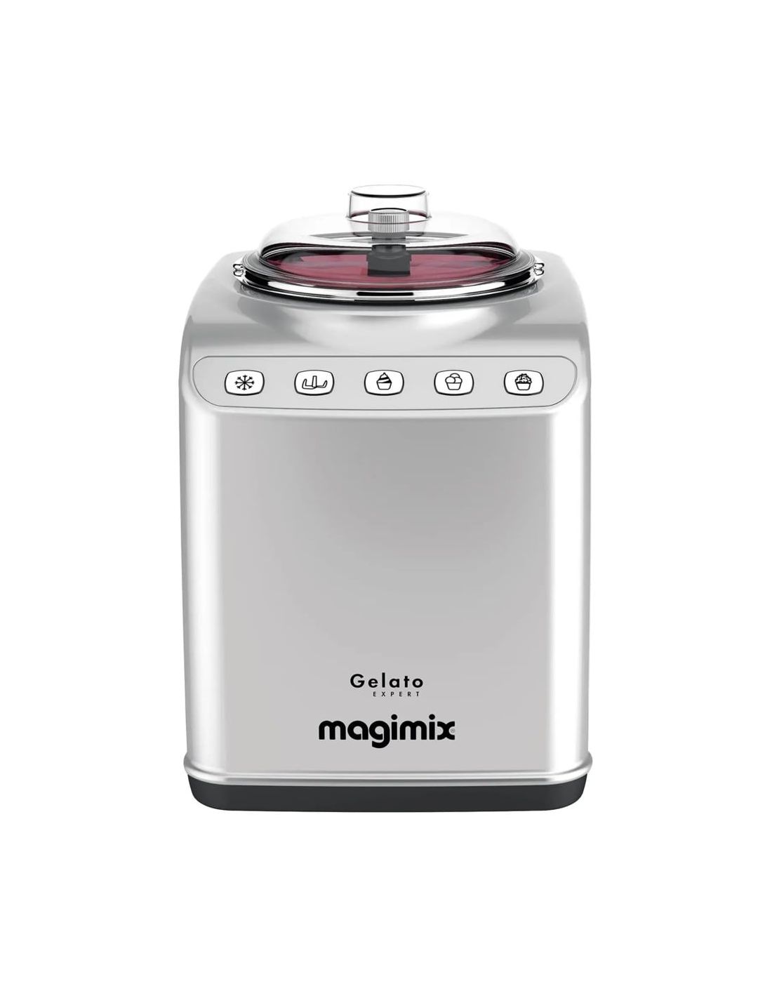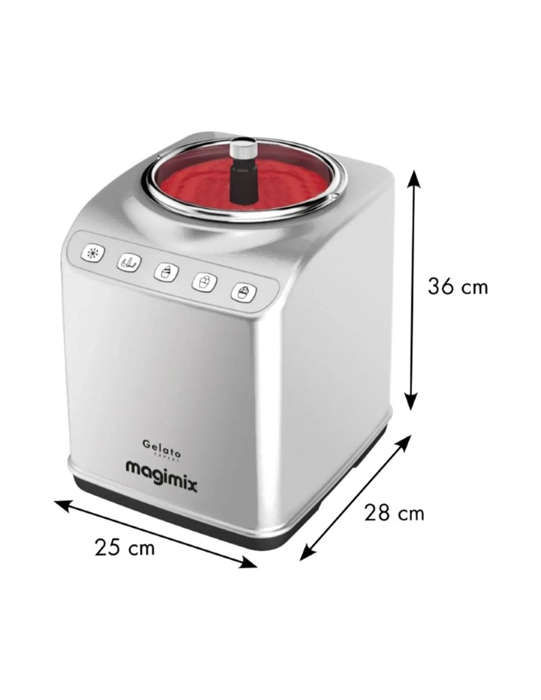 La machine à glace Gelato Expert Magimix a été conçue pour préparer glace, sorbet, granité et yaourt glacé de manière pratique et efficace, avec des résultats haut de gamme. Grâce à son système de réfrigération intégré, elle refroidit et turbine en même temps, sans nécessité de précongeler la cuve, ce qui permet de préparer plus facilement des desserts glacés maison en moins de temps.