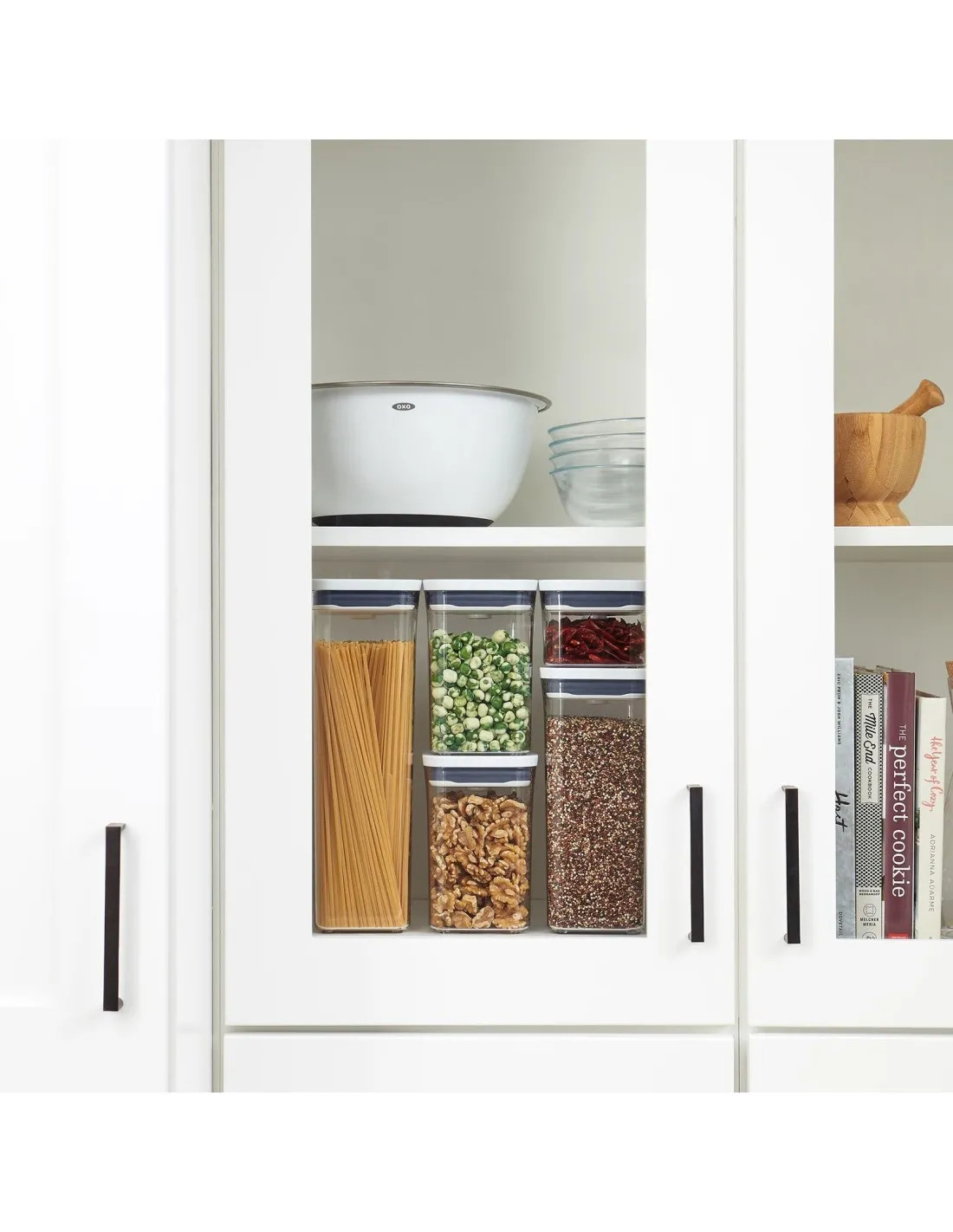 Les bouteilles de OXO sont fermées avec des joints hermétiques et s’ouvrent facilement d’une seule main. Ils ont différentes formes et tailles, sont modulaires et sont exactement ce dont vous avez besoin pour rénover votre garde-manger. Chaque conteneur POP est doté d’un flacon transparent sans BPA, de coins arrondis pour faciliter les fuites et d’une ligne de remplissage pour éviter le remplissage excessif. Différentes tailles sont conçues pour différentes doses d’aliments comme la farine, les pâtes, le sucre,... L’ouverture des flacons est aussi simple que d’appuyer sur un bouton, qui sert également de pièce pour le couvercle. Appuyez toujours sur le bouton pour ouvrir et fermer le couvercleLa ligne POP dispose également d’accessoires qui se fixent au bas des couvercles pour tirer le meilleur parti de vos bouteilles POP de la OXO.