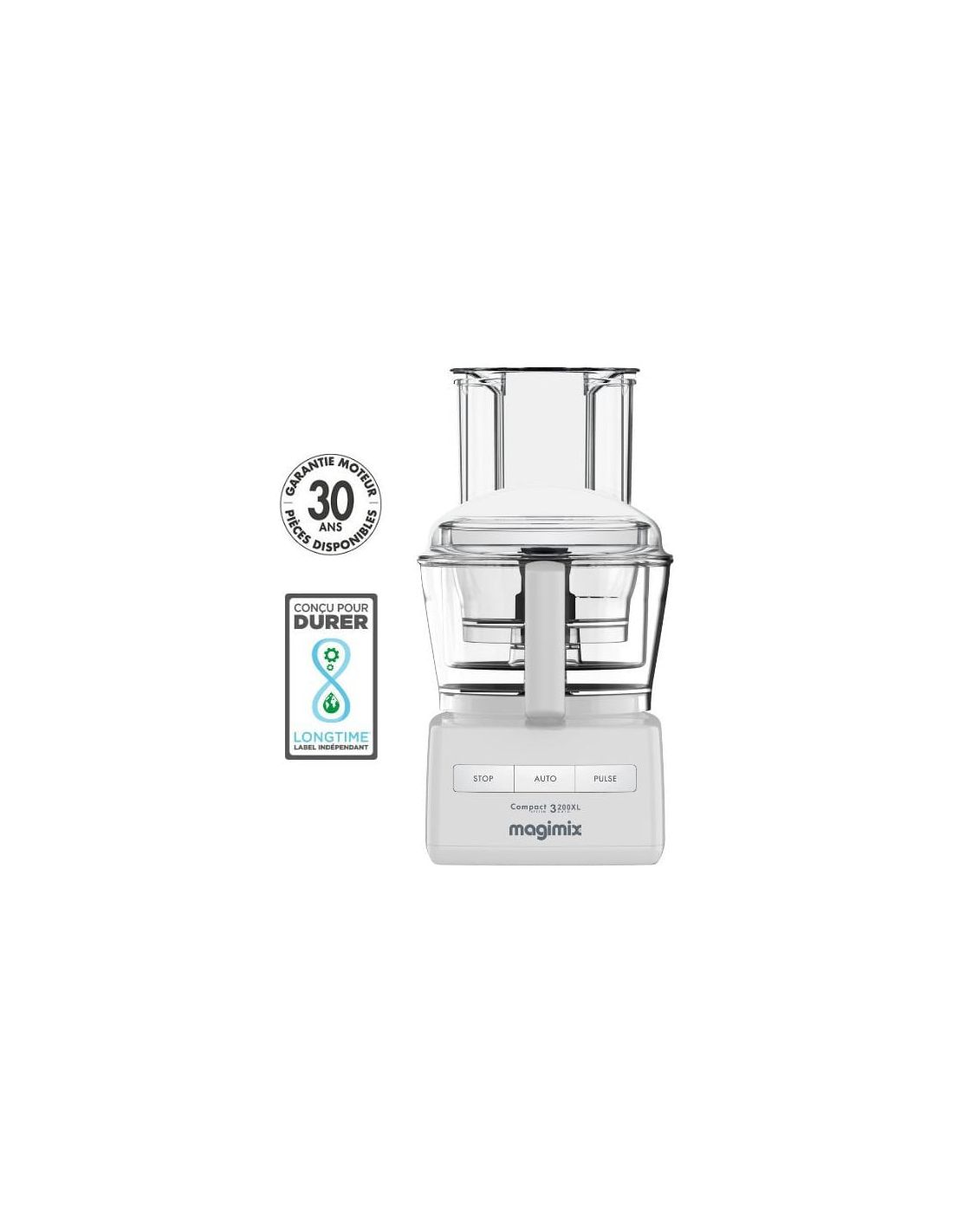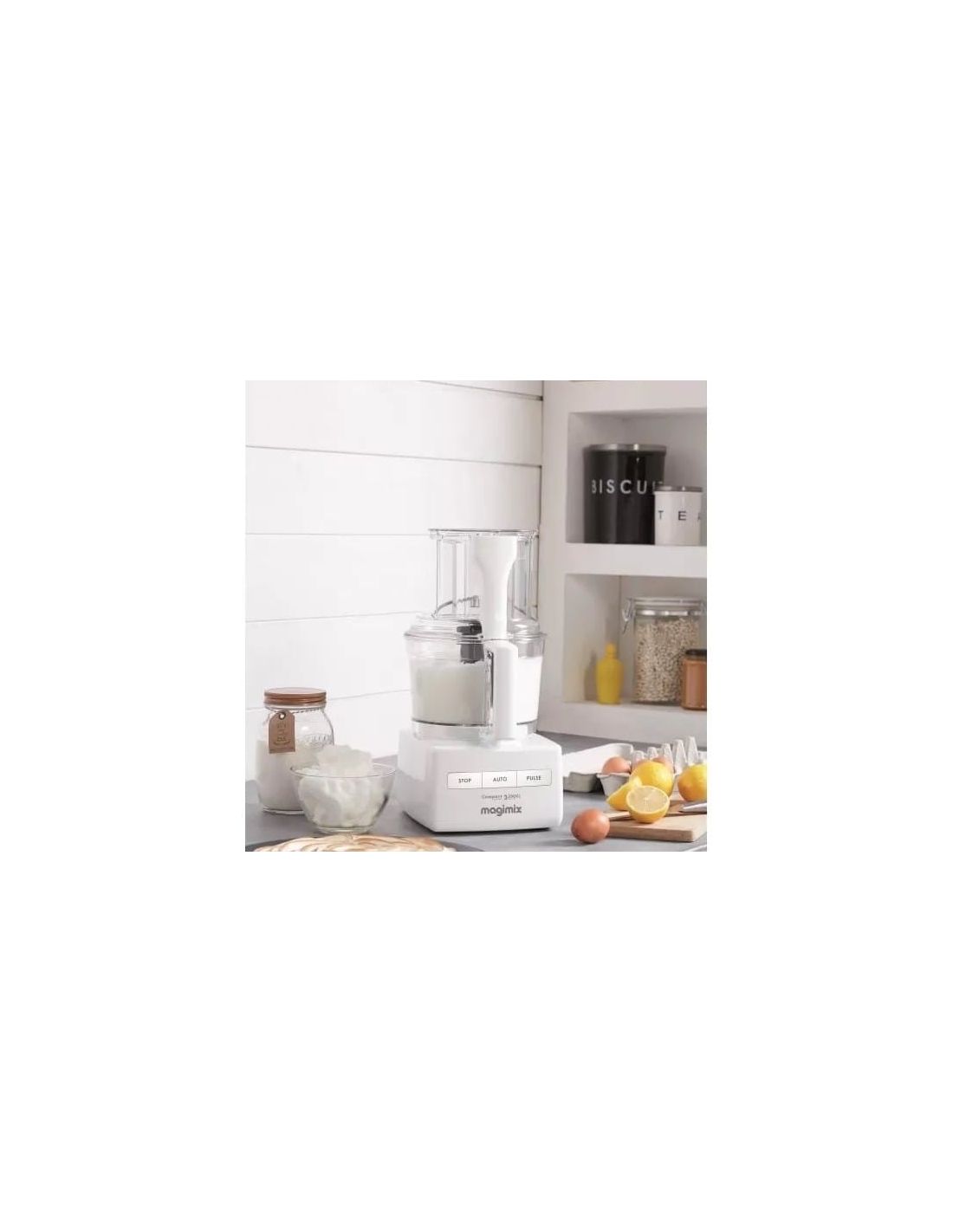 Le Robot multifonction CS 3200 XL Magimix est une solution compacte et polyvalente pour préparer plus facilement des recettes sucrées et salées au quotidien. Adapté à 1 à 4 personnes, il permet de trancher, râper, mélanger, pétrir, fouetter, hacher et émulsionner, ce qui en fait une aide pratique pour le pain, les gâteaux, les purées, les soupes, les sauces, les légumes préparés et la viande hachée.