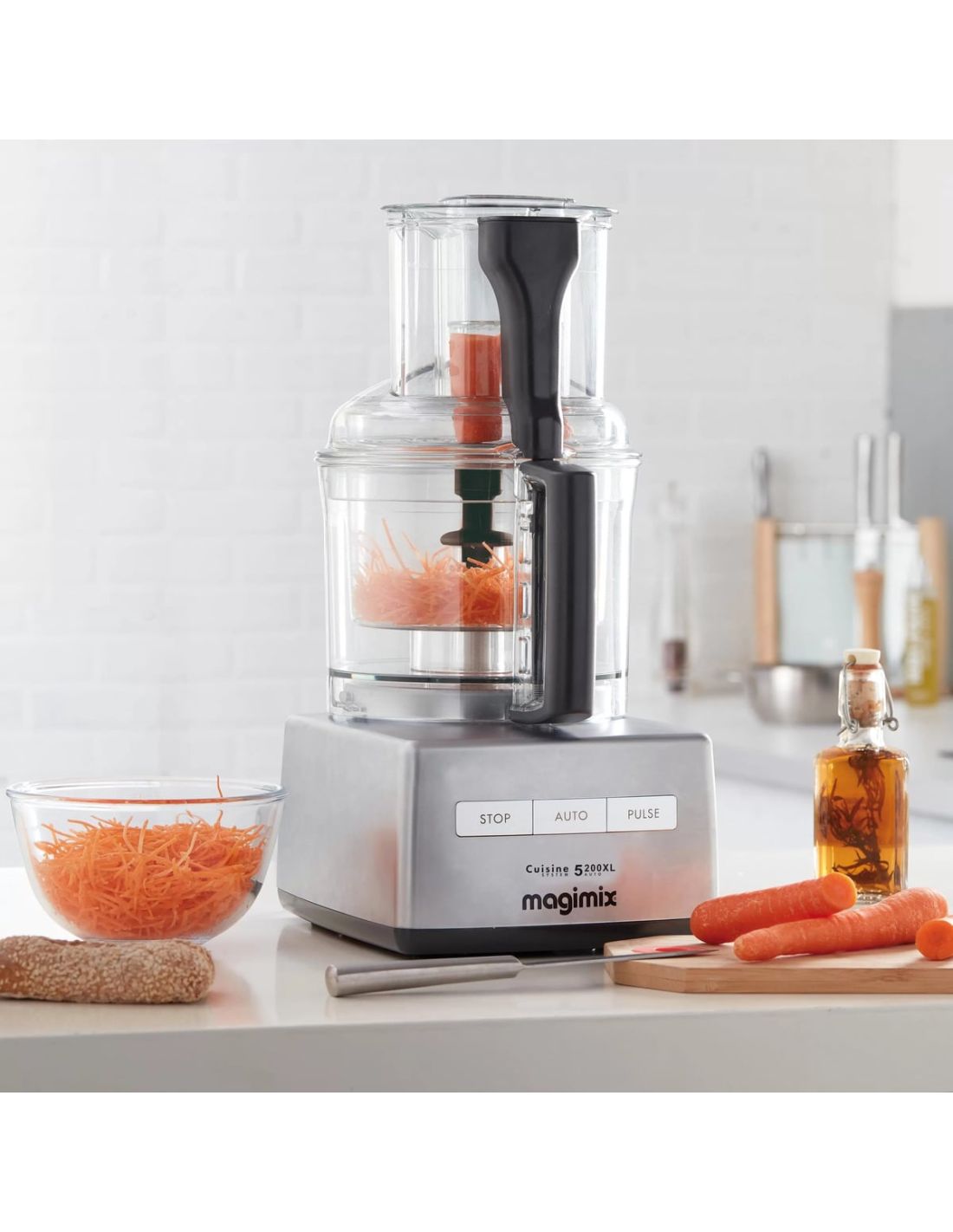 Le Robot multifonction CS 5200 XL Magimix est une solution polyvalente et puissante pour préparer plus facilement des recettes sucrées et salées au quotidien. Adapté à 1 à 8 personnes, il permet de trancher, râper, mélanger, pétrir, fouetter, hacher et émulsionner, ce qui en fait une aide pratique pour le pain, les gâteaux, les purées, les soupes, les sauces, les légumes préparés et la viande hachée.