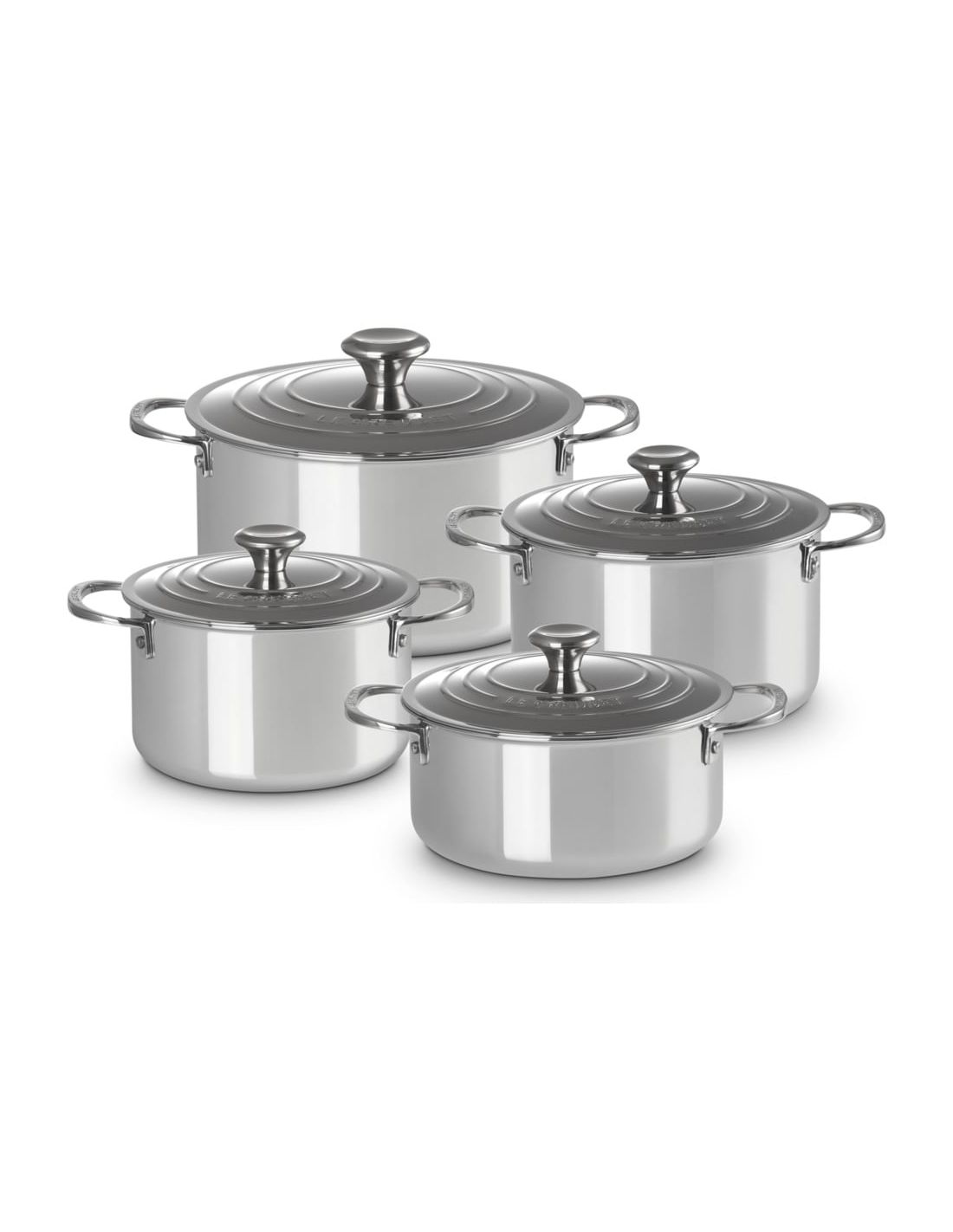 Inox 18/10 avec fond magnétique compatible induction et poignées en inox 18/10 avec revêtement PVD brun. Comprend : faitout 20 cm, casserole 20 cm, sauteuse basse 24 cm, casserole/poêlon 16 cm et 3 couvercles (16/20/24 cm). Design : Patricia Urquiola.La collection Edo associe performances quotidiennes et élégance discrète ; les poignées aux lignes souples...