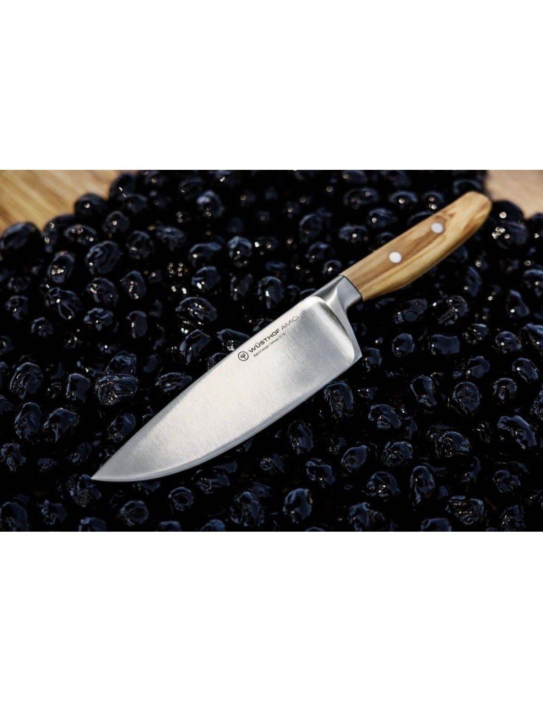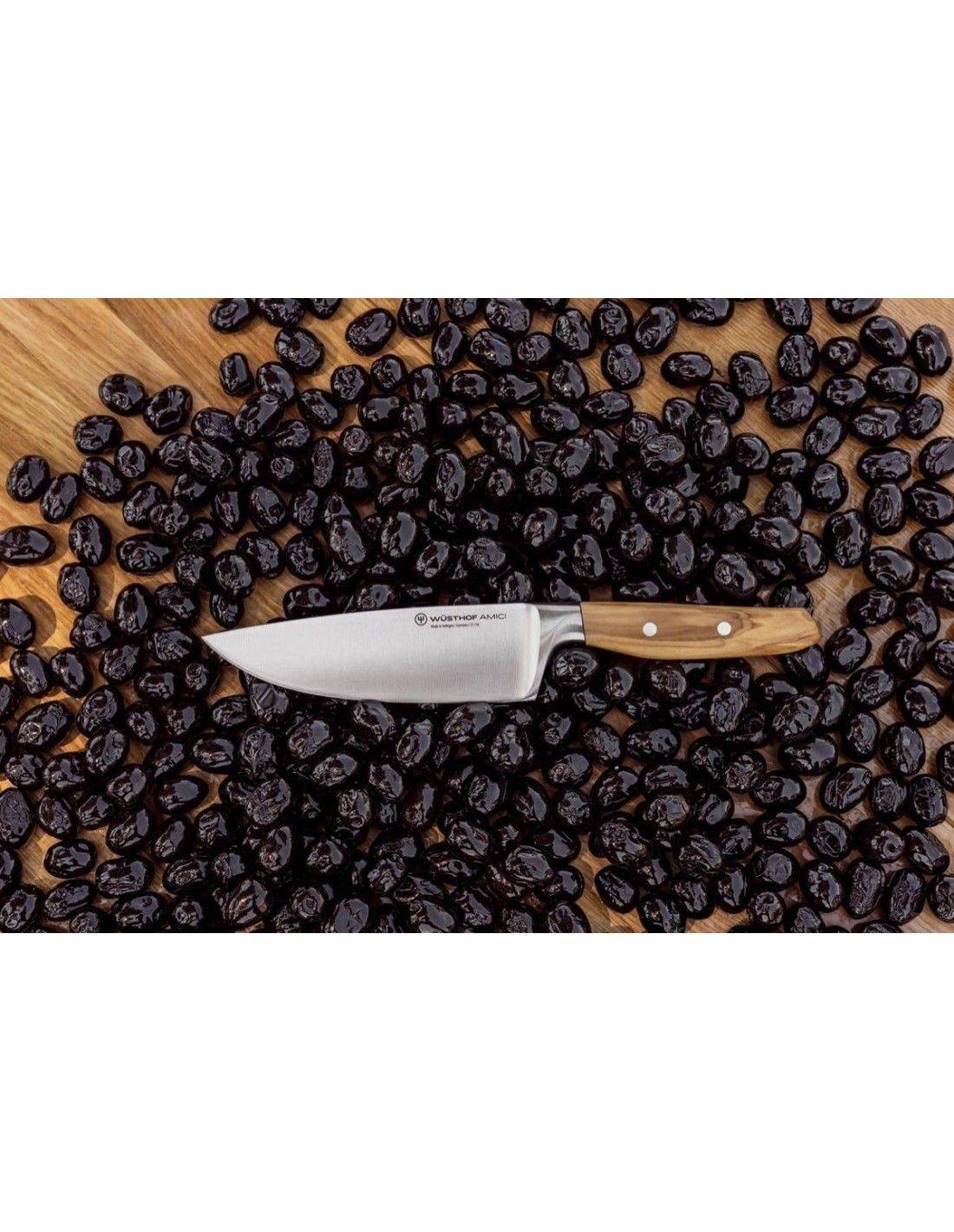 Le Wüsthof Amici Couteau de Chef 16 cm est une pièce polyvalente et indispensable en cuisine, conçue pour répondre efficacement aux tâches de préparation du quotidien. Wüsthof le présente comme un outil de base essentiel aussi bien pour les cuisiniers à la maison que pour les professionnels, adapté à la majorité des tâches de cuisine et à une grande variété de techniques de coupe et de prise en main.