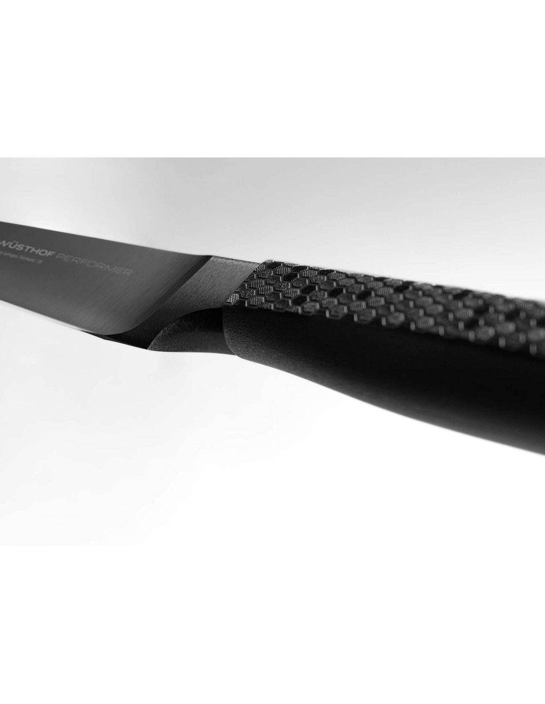 Wüsthof met en avant dans cette gamme le revêtement noir profond Diamond-Like Carbon (DLC), qui réduit la friction et favorise une coupe plus fluide, tout en rendant la lame particulièrement résistante. Le manche ergonomique avec motif Hexagon Power Grip offre une prise en main sûre et antidérapante, même dans des conditions exigeantes. C’est un excellent choix pour celles et ceux qui recherchent un petit couteau haute performance, précis et confortable.