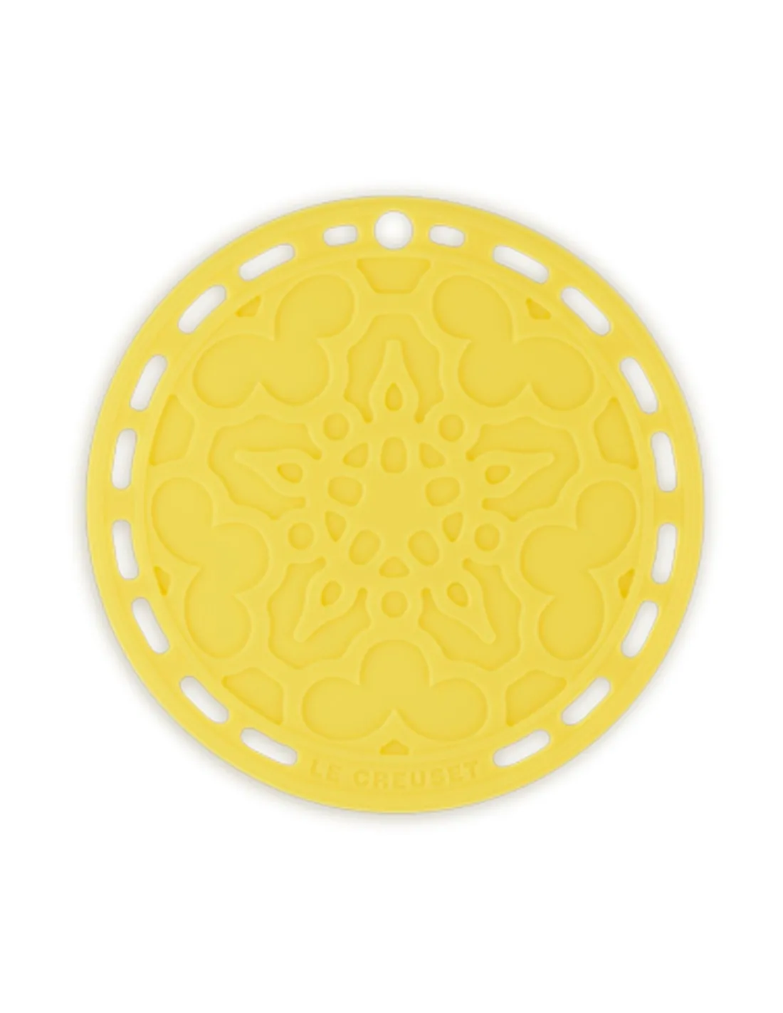 Base de 20 cm para tachos Le Creuset de silicone elegantes, flexíveis e resistentes. As bases para tachos de silicone de elevada qualidade da Le Creuset utilizam-se para colocar em cima as panelas e copos, para que as mesas e toalhas não sofram qualquer dano. Também podem utilizar-se como pegas para pratos e panelas e como anti-deslizantes para colocar por baixo de outros utensílios, uma vez que evitam que deslizem. Fabricadas em silicone certificado pela Agência de Administração de Medicamentos e Alimentos (Food and Drug Administration, FDA) dos Estados Unidos, totalmente seguras para os alimentos e resistentes às manchas. Adequadas para a máquina de lavar louça. Resistem a temperaturas até 250 °C.