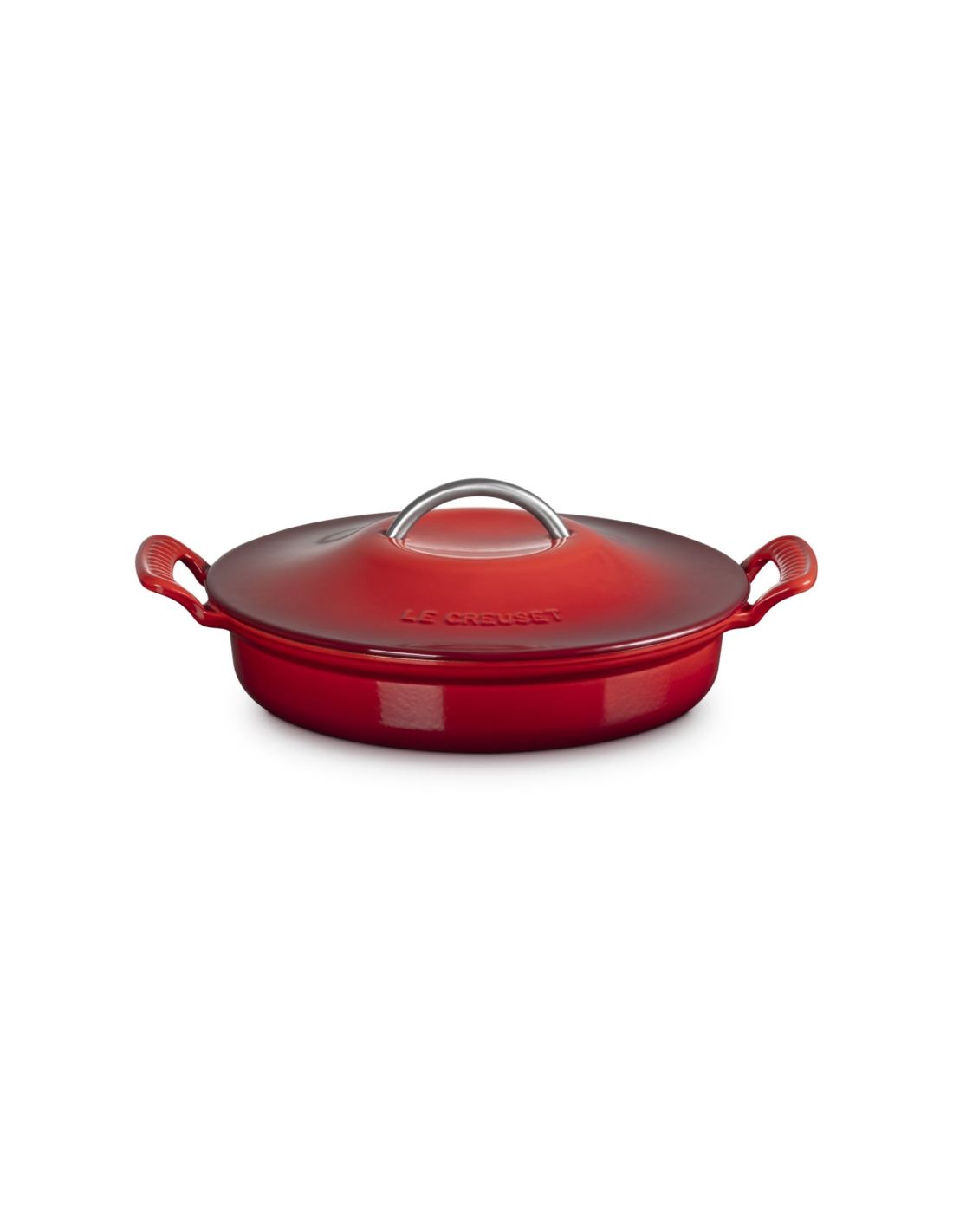 Fabricada em ferro fundido esmaltado, esta cocotte rasa proporciona calor uniforme para dourar, refogar e muito mais. A sua base larga e tampa abobadada fixam a humidade e o sabor, enquanto as curvas suavizadas e os detalhes em aço inoxidável conferem um toque moderno a um design intemporal. Concebida para durar, fácil de limpar e para todos os momentos da cozinha.