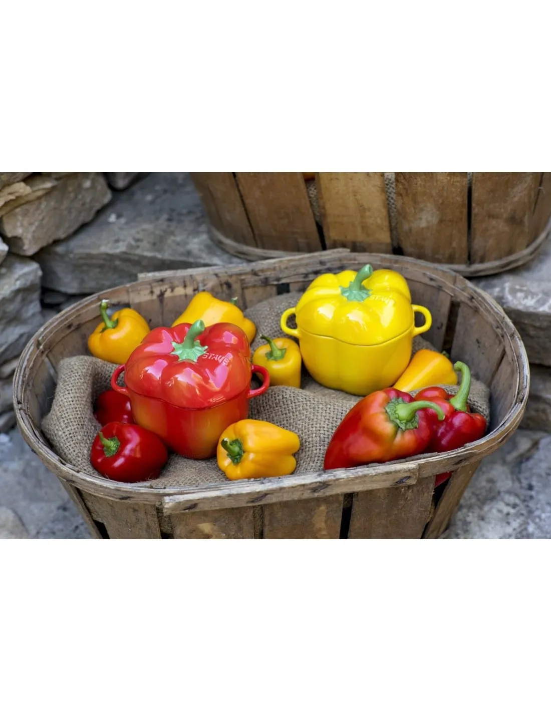 A Cocotte tomate pequena de cerâmica da Staub foi criada depois do sucesso da cocotte em forma de abóbora. O desenho foi inspirado no tomate da variedade Brandywine que é considerada uma das mais saborosas em todo o mundo. Apto para o microondas e forno.