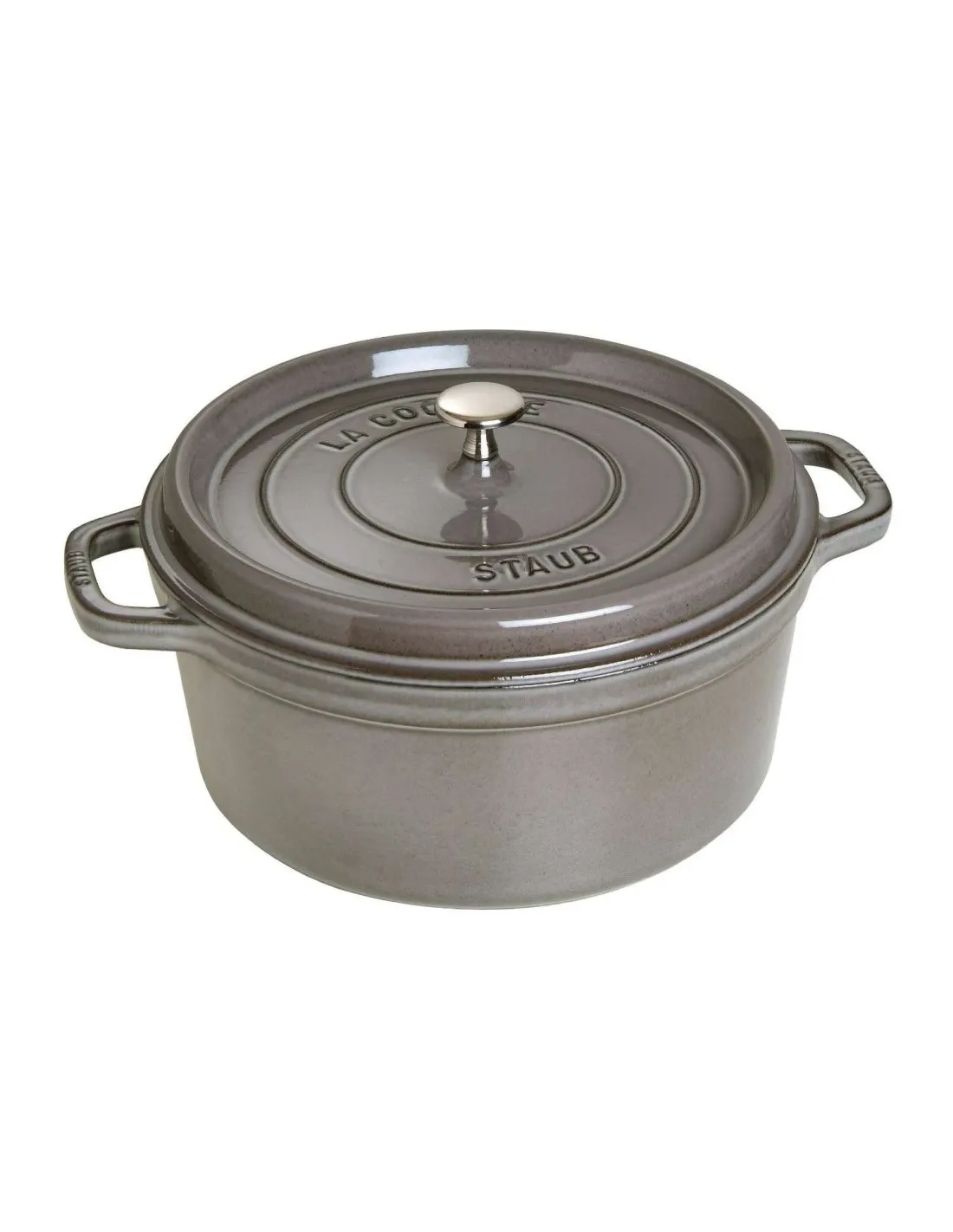 Cocotte redonda 12cm da Staub. Eleita pelos melhores chefs do mundo, a cocotte Staub utiliza a tampa com picos de auto-humedecimento, uma inovação exclusiva que permite que as gotas de condensação se espalhem de modo uniforme no preparado. Mantém as carnes tenras e as verduras suaves. Os aromas e os sabores preservam toda a sua intensidade e os alimentos...