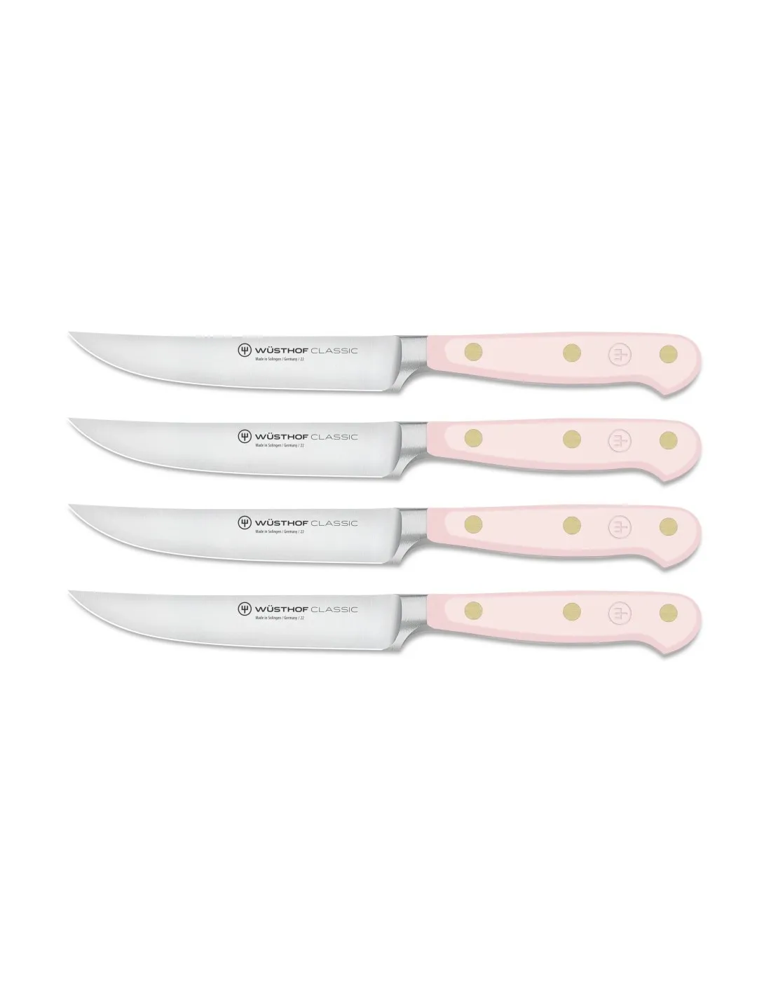 O conjunto é composto por 4 facas de bife da Wusthof Classic Colour. A lâmina desta faca é extremamente afiada e corta perfeitamente os seus pratos de carne e vegetais favoritos e complementa lindamente com qualquer conjunto de mesa. Cada faca é forjada a partir de uma peça única de aço temperado com alto teor de carbono e afiada com precisão para permanecer afiada por mais tempo.