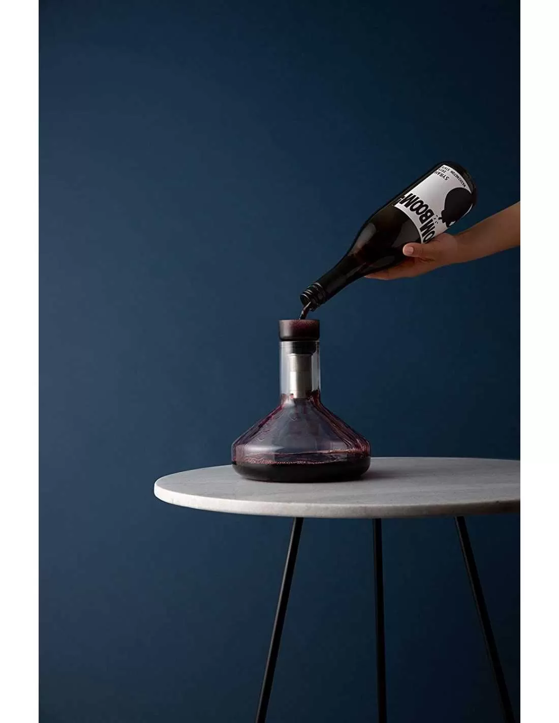 O sistema de decantação Pura da Rabbit areja e filtra o vinho à medida que o despeja. O arejador espalha o vinho pela lateral para um arejamento instantâneo e o microfiltro remove os sedimentos à medida que o serve. O arejador e o sistema de filtro ficam no decantador ao servir, não havendo necessidade de removê-lo. Capacidade de uma garrafa de vinho de 750 ml.