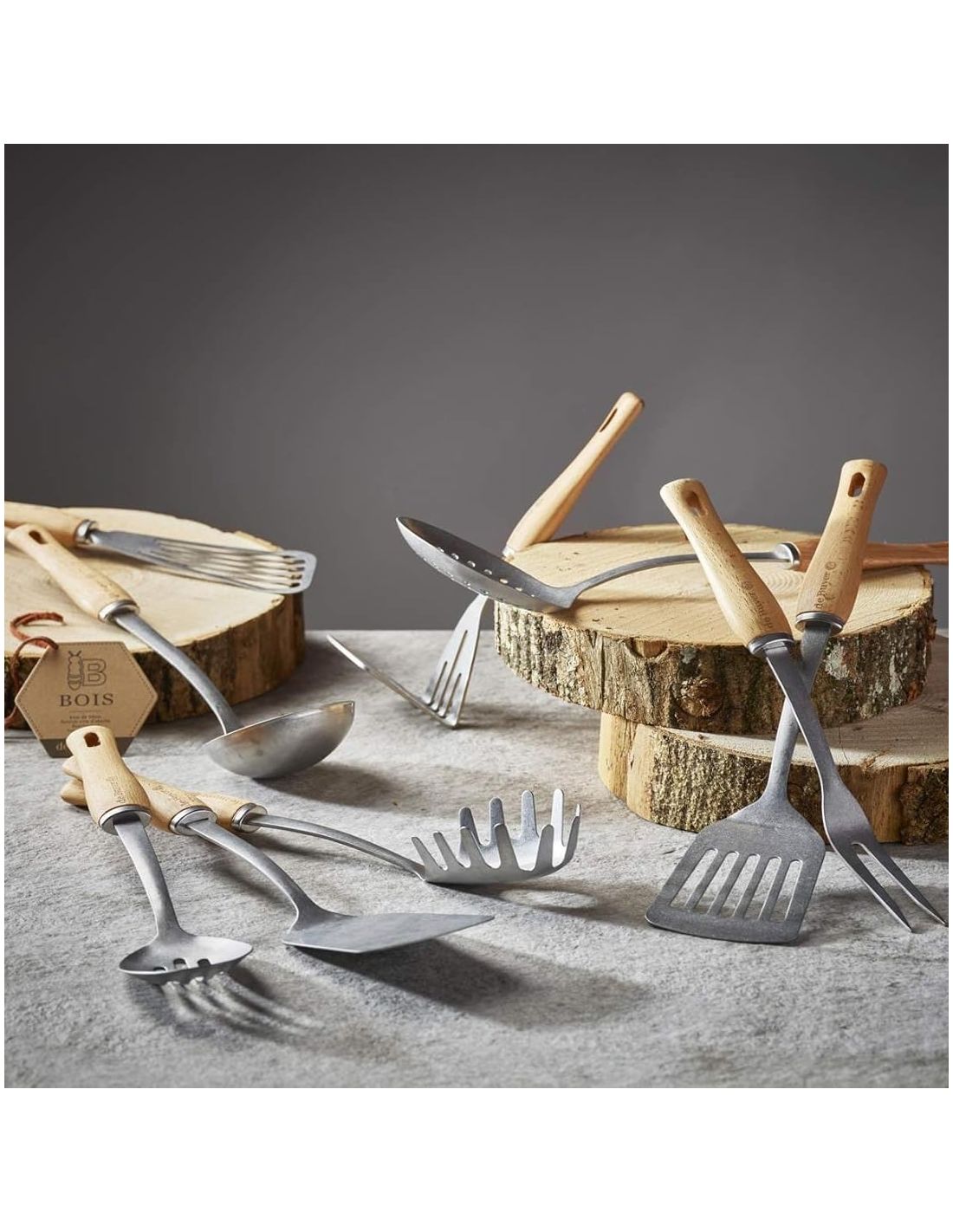 Escumadeira fina 36,5cm B BOIS de Buyer é um utensílio de cozinha B BOIS que é ideal para retirar alimentos de água a ferver e escorrer rapidamente, útil para cozer massa, legumes ou frituras. O visual vintage do inox e o toque natural da madeira tornam-no uma peça bonita para ter sempre à mão.