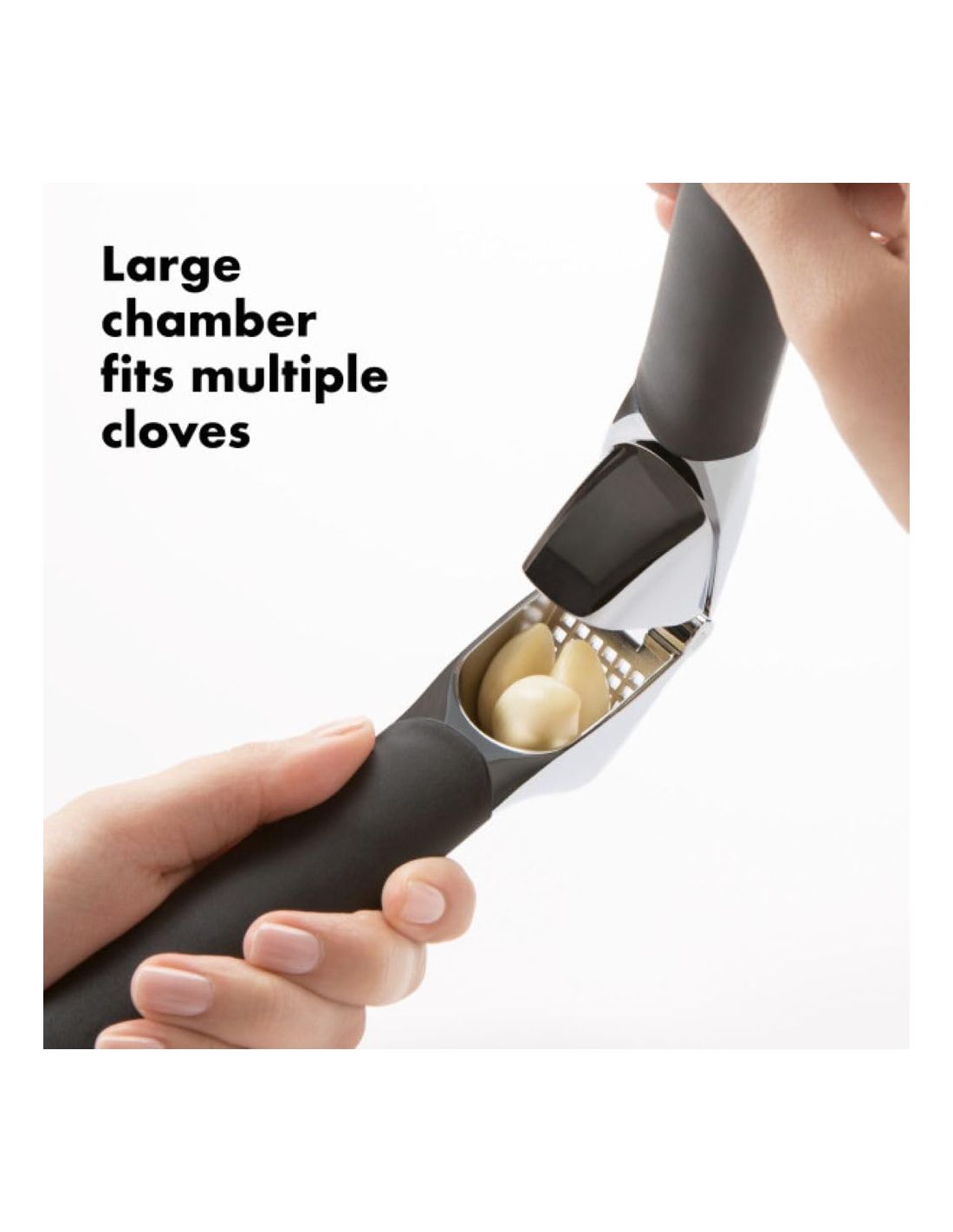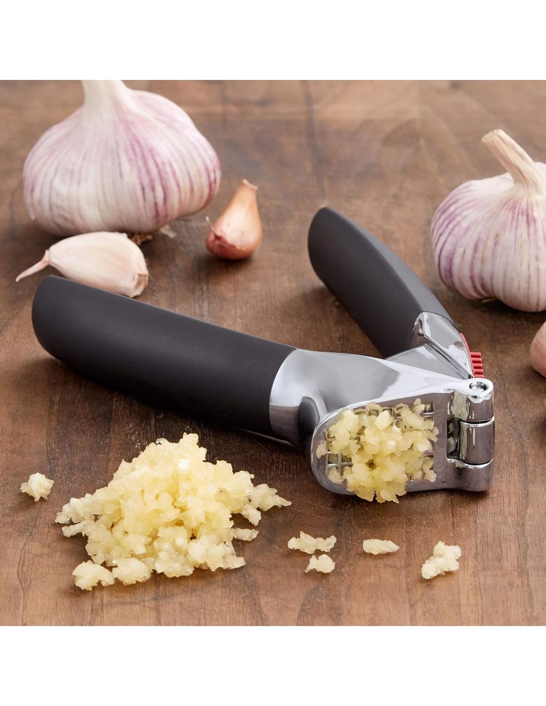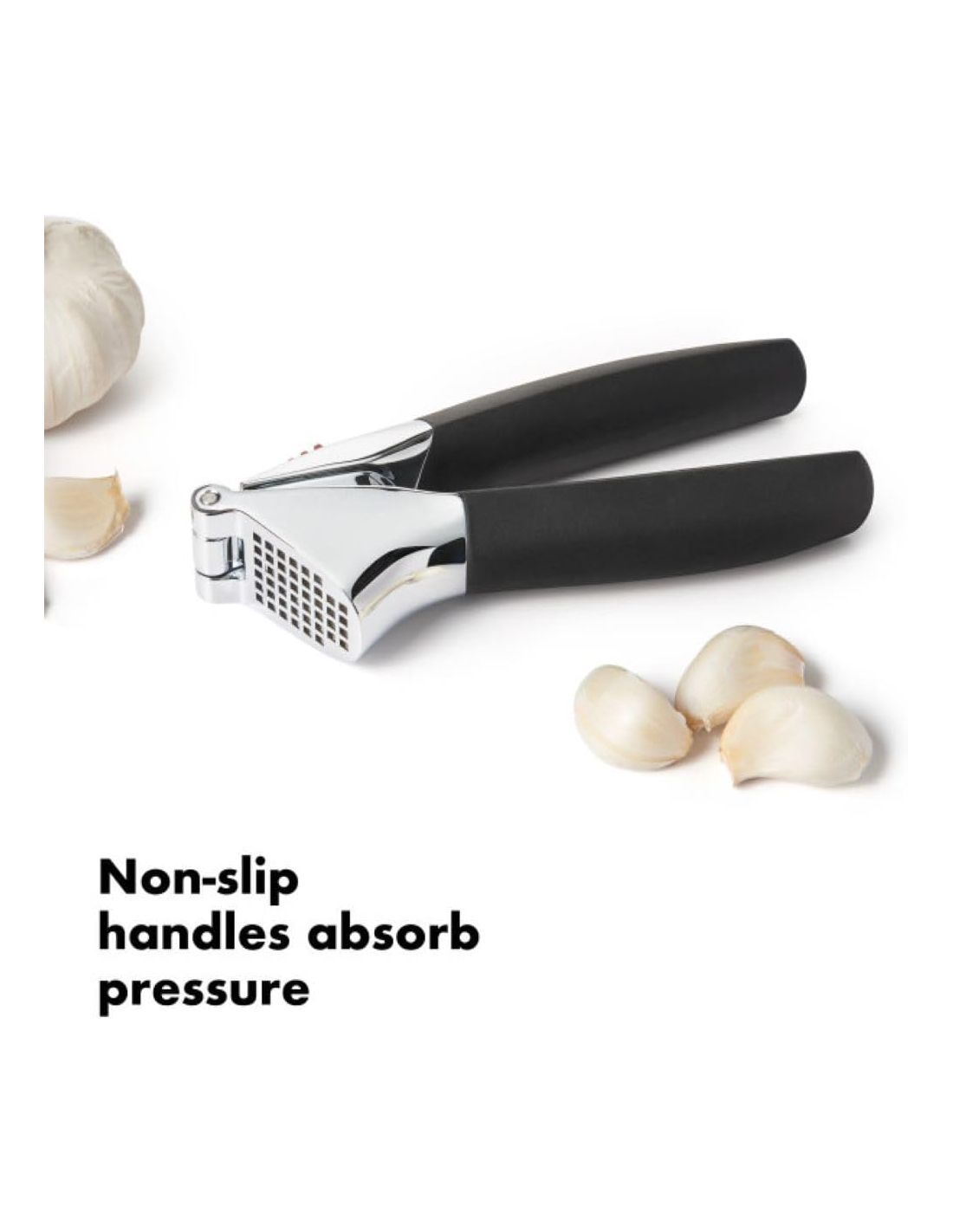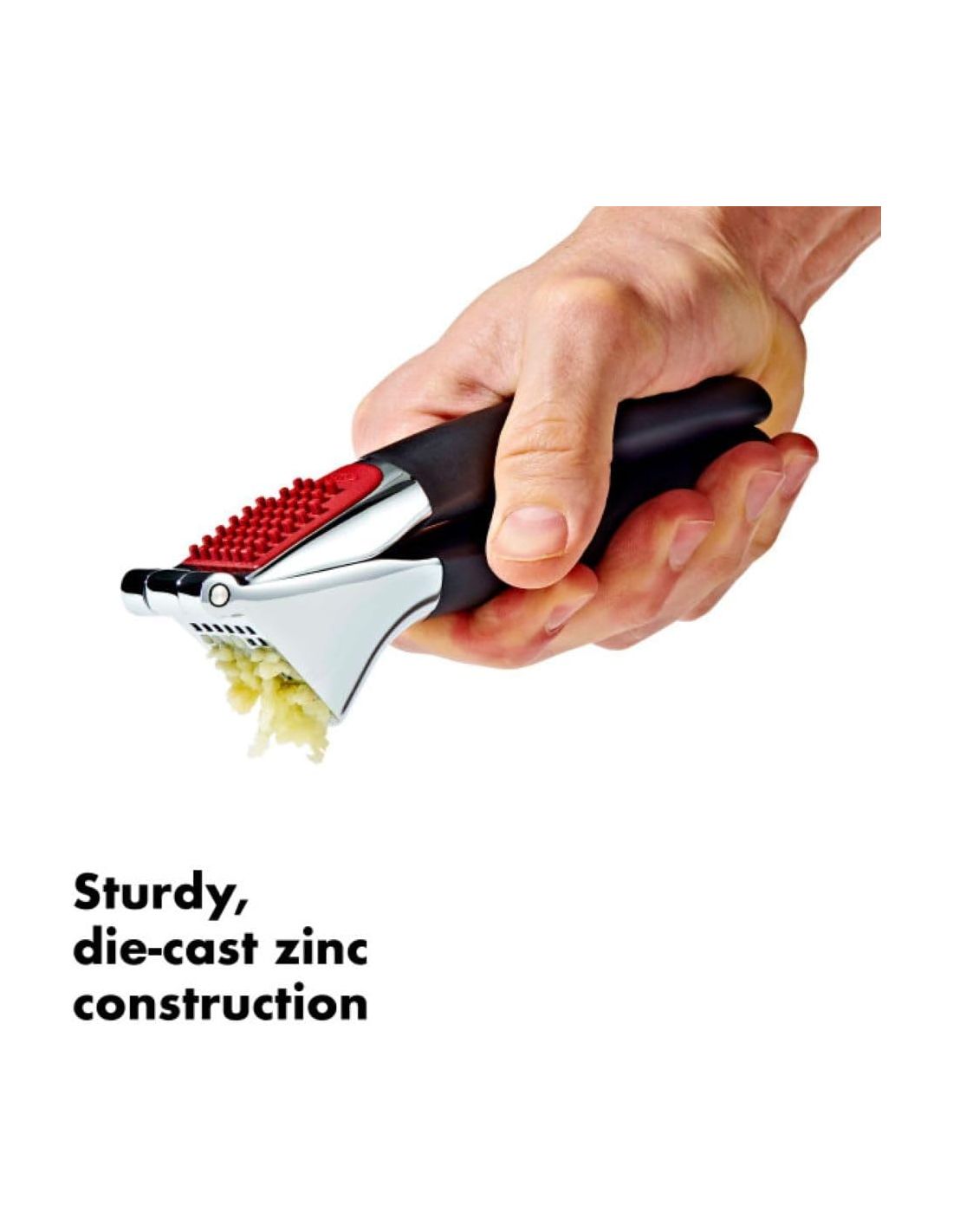 Espremedor de alho robusto com corpo em zinco fundido, pensado para esmagar alho com menos esforço. A câmara ampla permite espremer vários dentes de alho de uma só vez, enquanto o limpador incorporado ajuda a desobstruir os orifícios com rapidez. As pegas ergonómicas e antiderrapantes absorvem a pressão e tornam a utilização mais confortável. Apto para máquina de lavar loiça.
