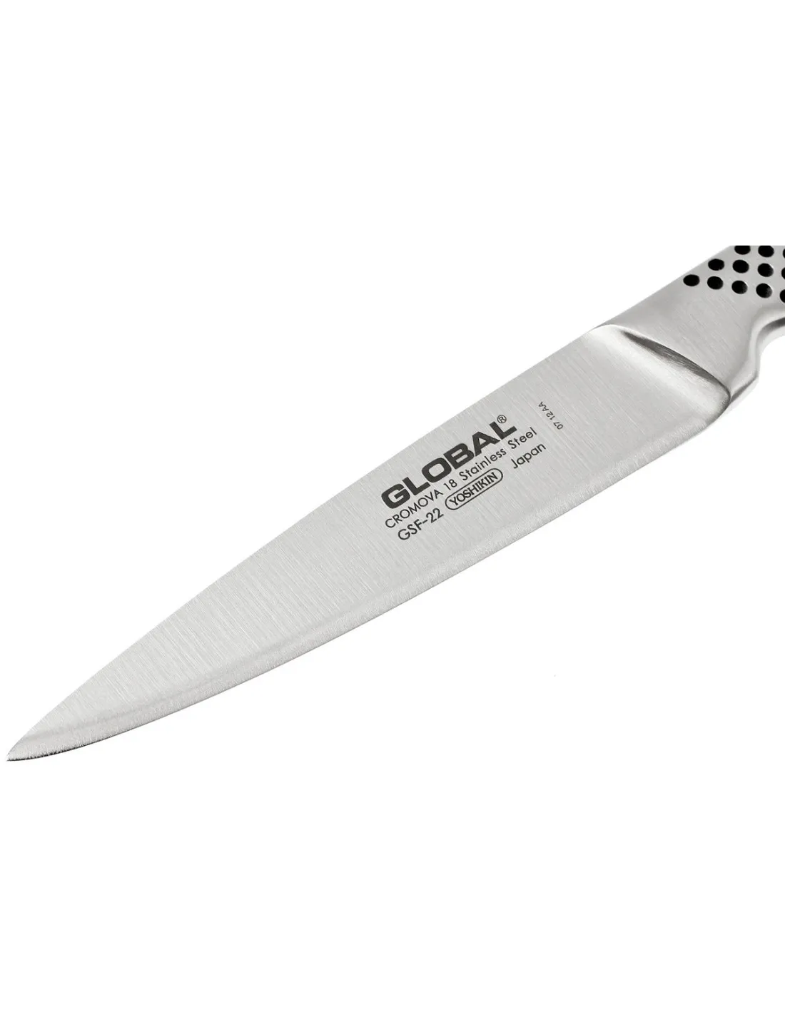 Uma das principais características das facas Global é o seu design, as facas são forjadas numa única peça composta pelo cabo e lâmina. Para o fabrico da folha, utiliza-se um aço inoxidável, o CHROMA 18, a sua composição de elevado teor de crómio (contém um 18% de cromo vanadio) confere-lhe uma grande resistência à oxidação, ao mesmo tempo que torna a folha muito resistente ao desgaste.