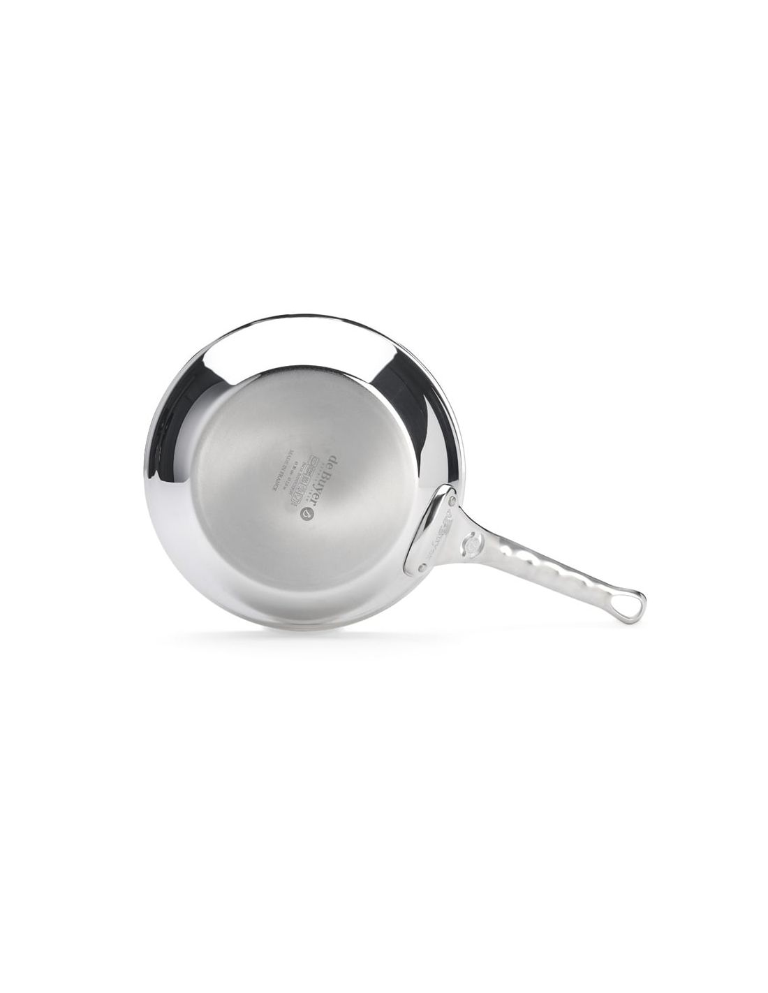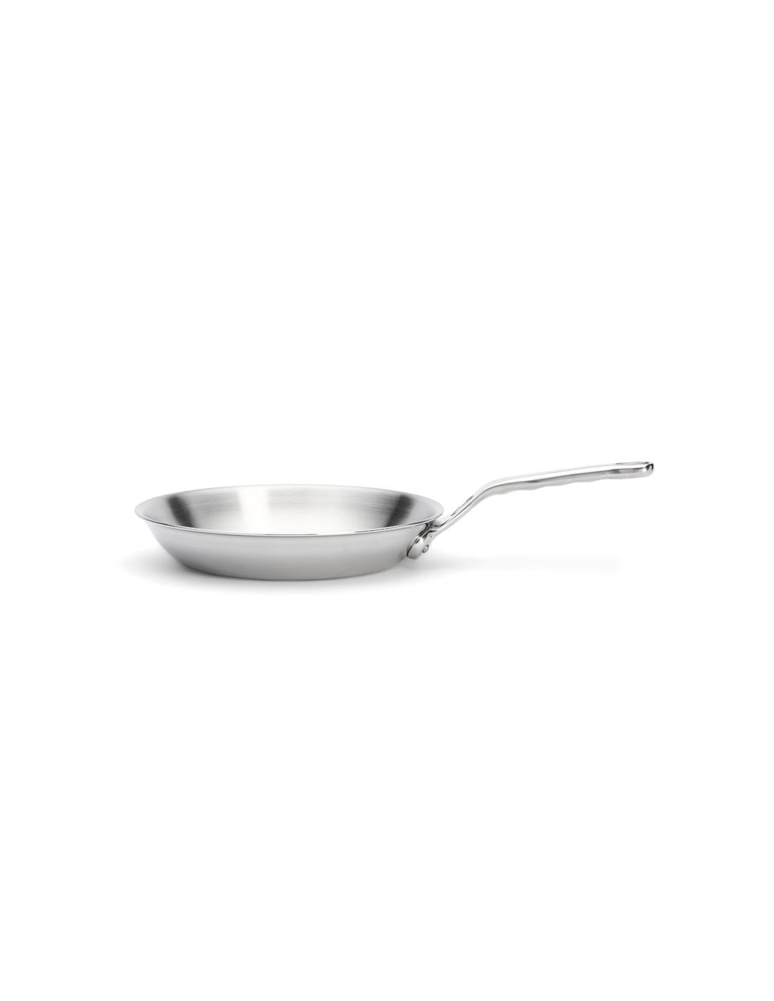 Frigideira antiaderente de aço inoxidável com as partes laterais estilo Lyonnaise, que lhe permite deslizar facilmente a comida para o prato. Ideal para cozinhar delicadamente. Indeformável, feita de múltiplas camadas, numa combinação de aço inoxidável do lado de fora e de alumínio no interior, o material da frigideira é hiper reactivo, aumentando rapidamente a temperatura, e a cozedura pára imediatamente quando desligar a fonte de calor. Pega elegante de aço inoxidável com rebites, ergonómica para um aperto confortável e que se mantém a baixa temperatura. Dica: aumente gradualmente a temperatura, especialmente na indução porque o material é muito sensível e um grande difusor de calor. Ocasionalmente poderá utilizar pasta de polimento para restaurar o brilho inicial. Apta para todas as fontes de calor, incluindo indução.