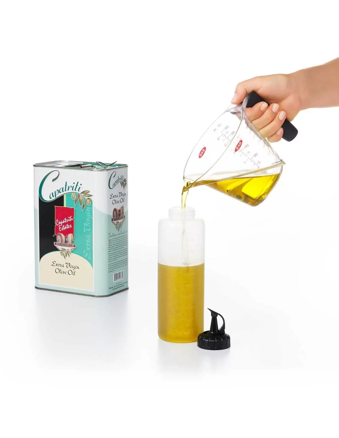 As garrafas doseadores da OXO são ideais para utilizar com azeite, óleos, vinagretes, chocolate líquido e muito mais. A tampa tem o sistema de fecho integrado para arrumar ou agitar com segurança. As garrafas reutilizáveis da OXO são de longa duração e têm uma escala para facilitar a criação de molhos compostos. Desmonta-se facilmente para uma limpeza eficaz.