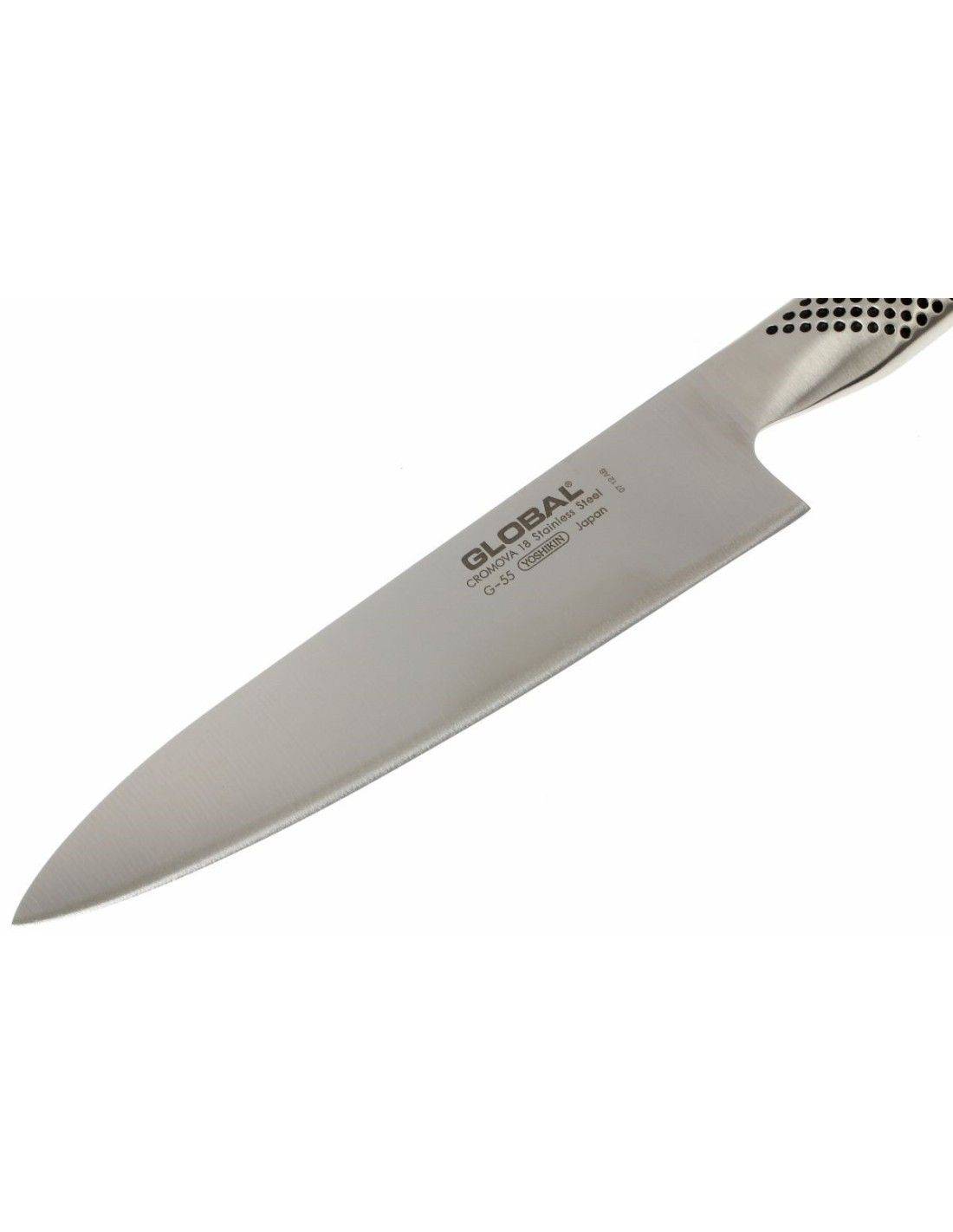 A Global G-55 Faca de Chef 18 cm é uma faca versátil e equilibrada, concebida para oferecer excelente desempenho nas tarefas de preparação do dia a dia. Com um tamanho ligeiramente mais compacto do que uma faca de chef tradicional, proporciona maior controlo e agilidade, sendo ideal para quem prefere uma lâmina mais manejável.