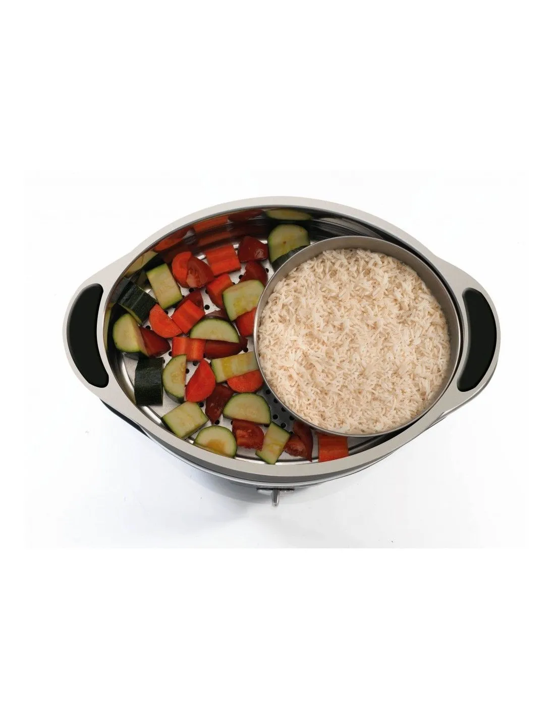 A forma de cozinhar mais eficaz para conservar todos os nutrientes dos alimentos. Cozinhe 2 ou 3 pratos ao mesmo tempo: legumes, arroz e carne ou peixe. Tanto para comer no momento ou para aproveitar a energia e preparar vários pratos para o dia seguinte, ou congelar.
