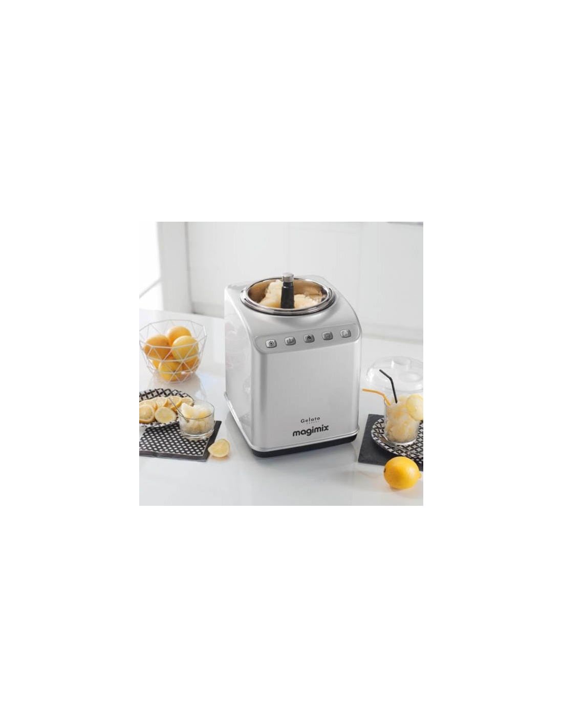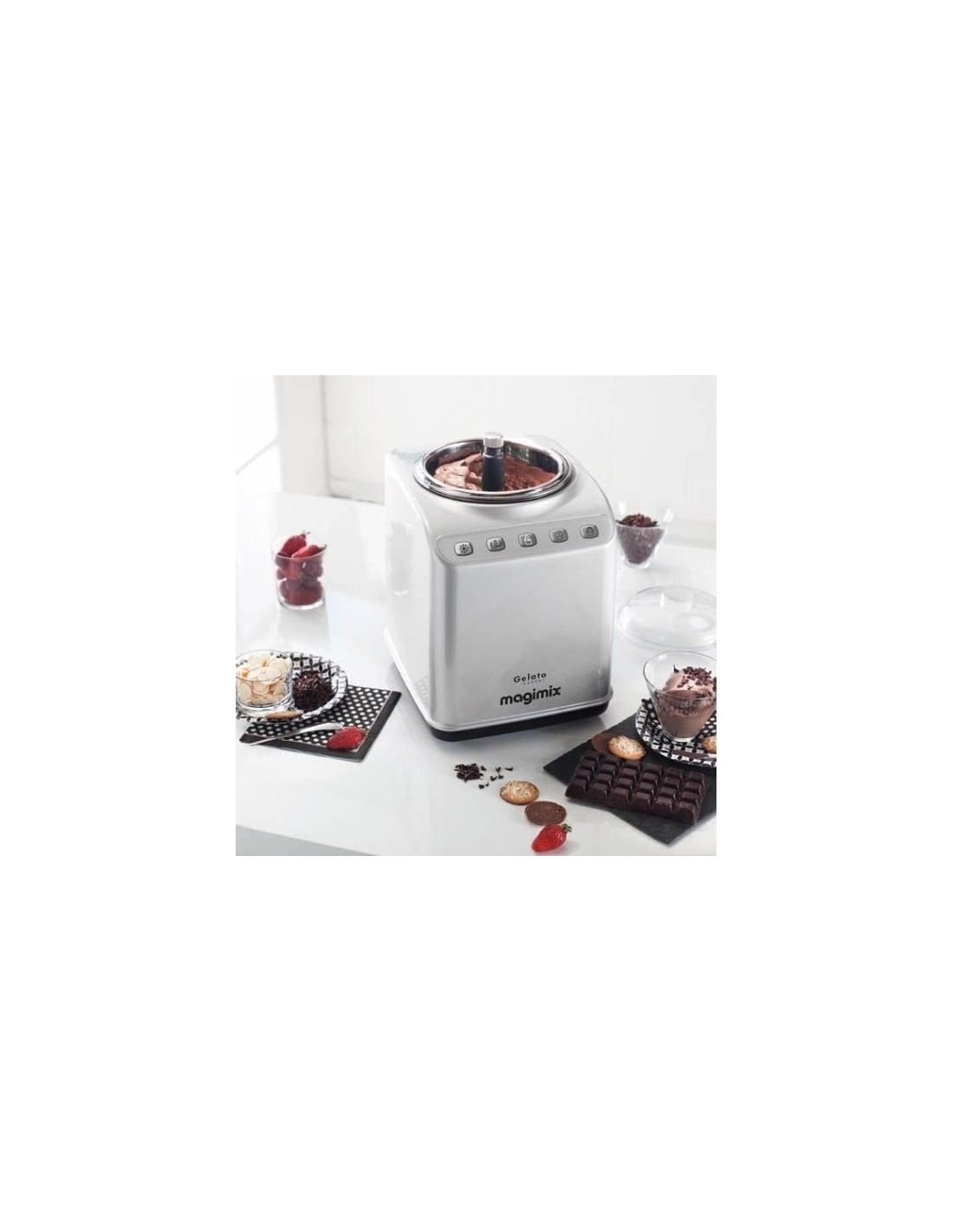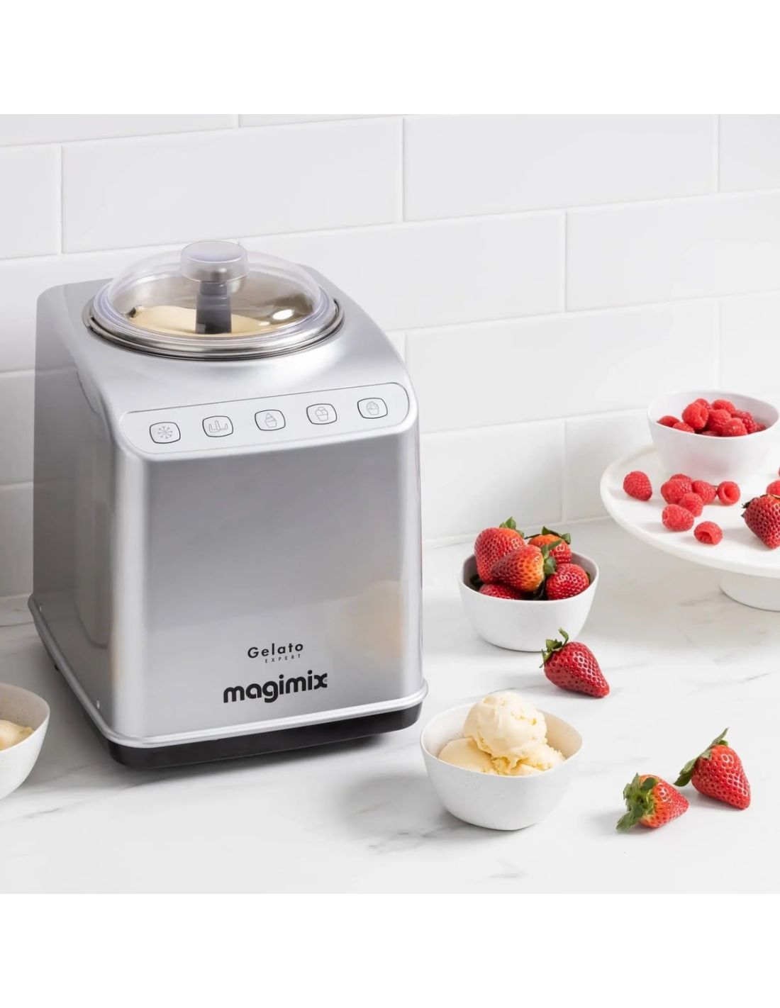 A Máquina de Gelados Gelato Expert Magimix foi concebida para preparar gelado, sorvete, granita e iogurte gelado de forma prática, rápida e com resultados de nível superior. Graças ao seu sistema de refrigeração integrado, arrefece e bate em simultâneo, dispensando a pré-congelação da taça e permitindo preparar sobremesas geladas caseiras em menos tempo e com maior conveniência.