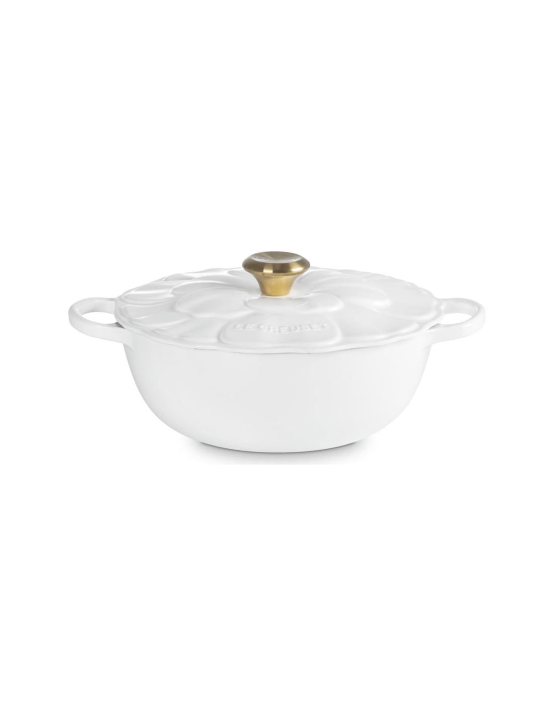 A Marmita Pétala da Le Creuset combina elegância e funcionalidade num design inspirado na delicadeza da flor da anémona. Com tampa em relevo e linhas suaves, esta peça em ferro fundido esmaltado foi criada para quem procura desempenho, durabilidade e uma apresentação distinta à mesa.