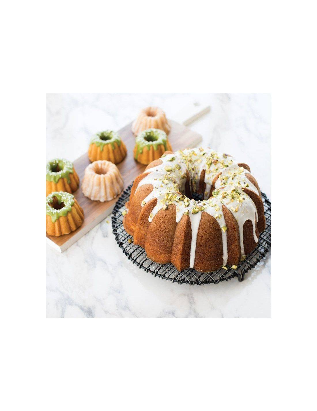 A Nordic Ware Forma Anniversary Bundt® é um dos modelos mais emblemáticos da marca, reconhecida pelo seu design clássico e intemporal que cria bolos com um acabamento elegante e profissional.