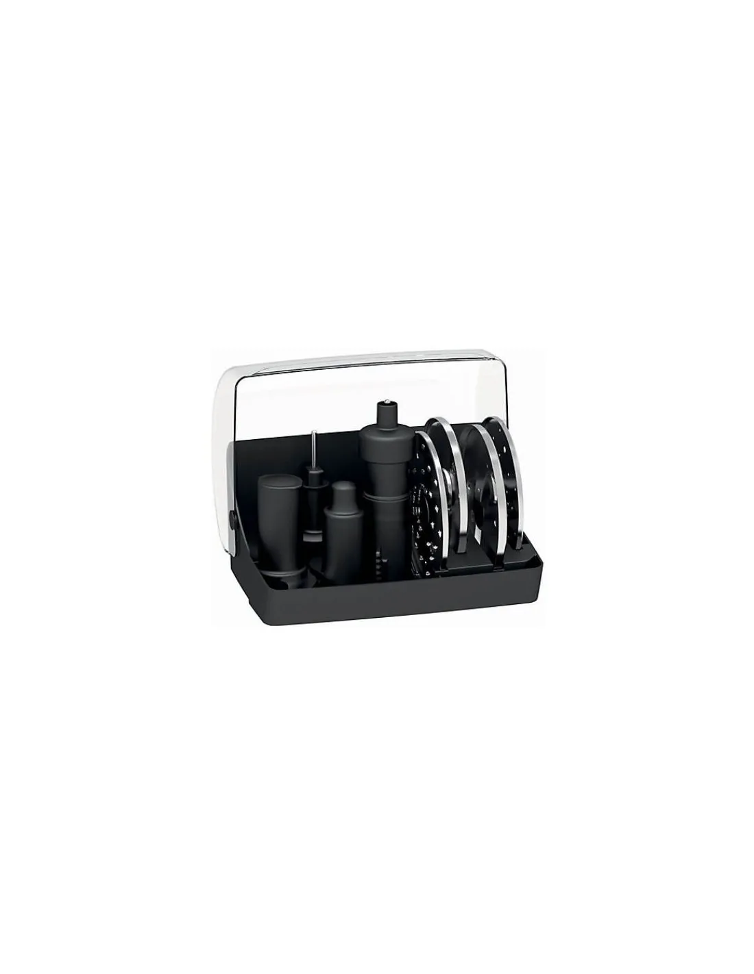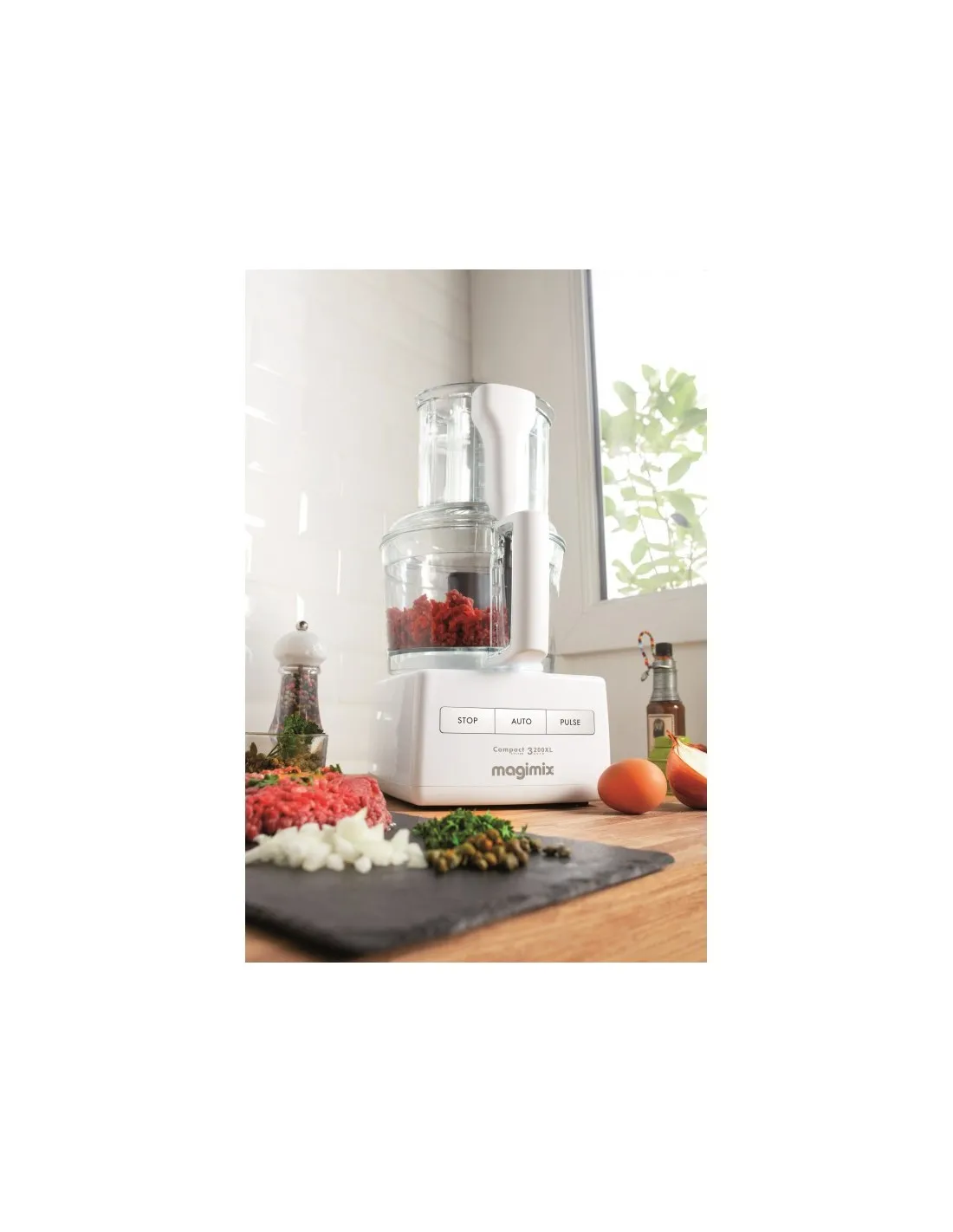 O novo modelo do Robot de cozinha CS 3200XL da Magimix é um multifunções 6-em-1, pois é fornecido com três cubas que permitem preparar todos os pratos do dia a dia. Com este robot pode bater claras de ovos, picar gelo, picar carne, misturar massa, moer frutos secos, fazer sumos, laminar legumes e muito mais. Um poderoso robot capaz de misturar, ralar, cortar, picar, bater, amassar e liquefazer os seus ingredientes. A primeira taça é a mais pequena para processamento de menores quantidades, como molhos, maionese ou comida para bebé. Segue-se uma taça média para fatiar e cortar e depois a cuba maior para bater ou amassar. Com apenas três botões (parar / auto / pulsar), o motor da Magimix ajusta potência automaticamente, dependendo do que está na taça, facilitando a preparação de todos os alimentos. Possui ainda uma caixa onde cada utensílio tem o seu lugar. Todas as taças e lâminas são laváveis na máquina.
