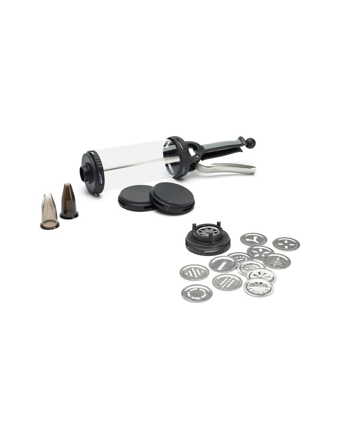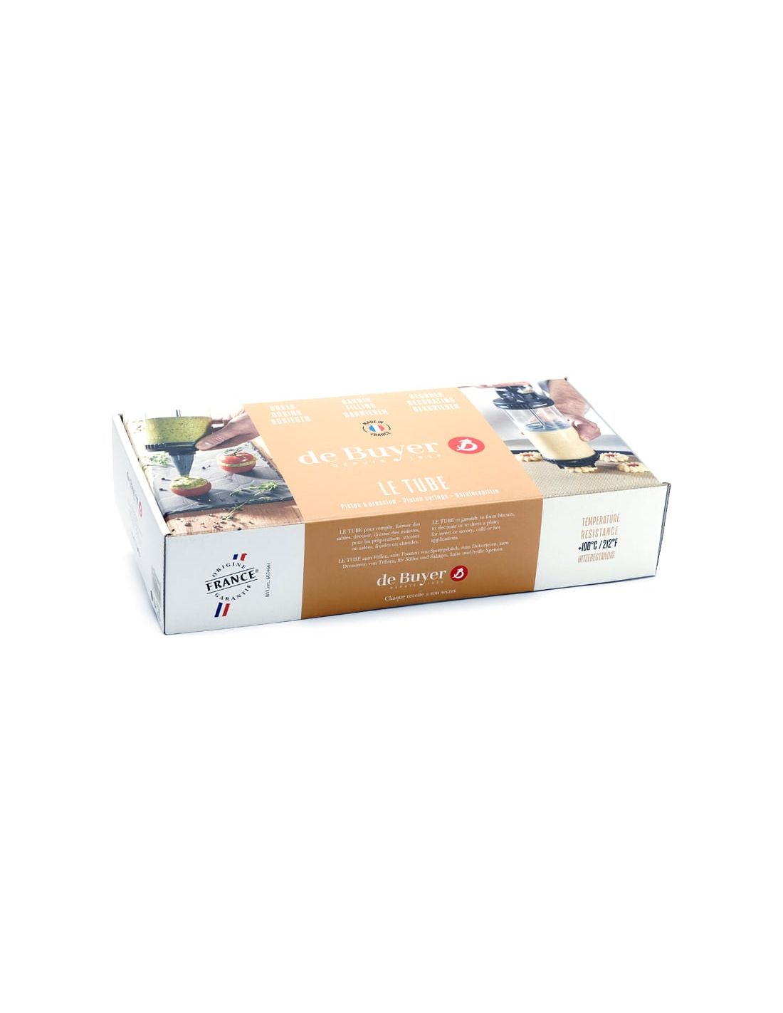O sistema de pressão com ajuste de dose permite distribuir quantidades regulares com facilidade, tornando o trabalho mais rápido e intuitivo. Esta versão inclui o kit de biscoitos, concebido para criar bolachas e biscoitos de formato uniforme com maior rapidez. O LE TUBE funciona como uma alternativa reutilizável e prática ao saco de pasteleiro, sendo uma excelente opção tanto para pastelaria do dia a dia como para preparações mais detalhadas.